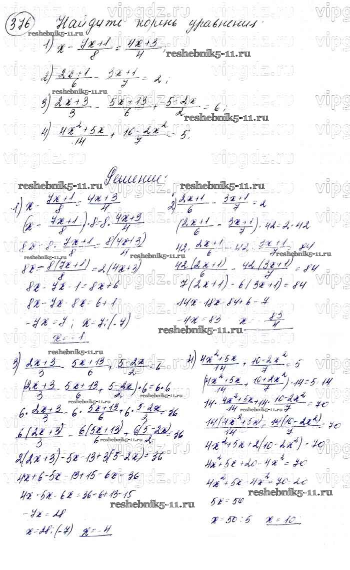 Готовая домашняя работа с ответами по Алгебре за 7 класс Мерзляк, Полонский, Якир Учебник Алгоритм успеха Базовый уровень Вентана-граф 2016 ФГОС - Упражнения 376