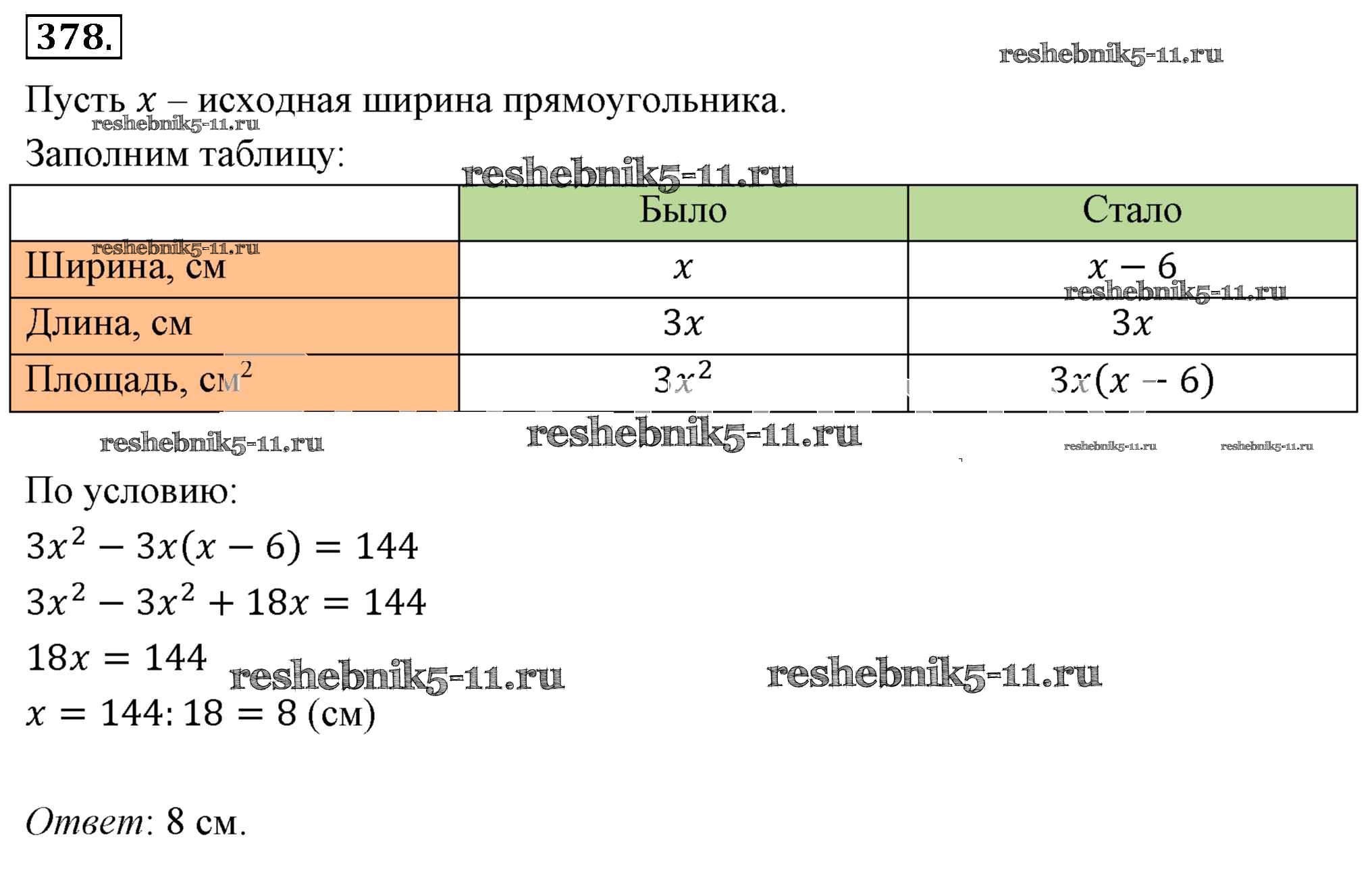 Готовая домашняя работа с ответами по Алгебре за 7 класс Мерзляк, Полонский, Якир Учебник Алгоритм успеха Базовый уровень Вентана-граф 2016 ФГОС - Упражнения 378