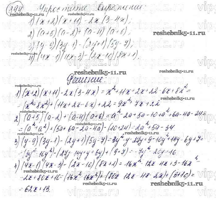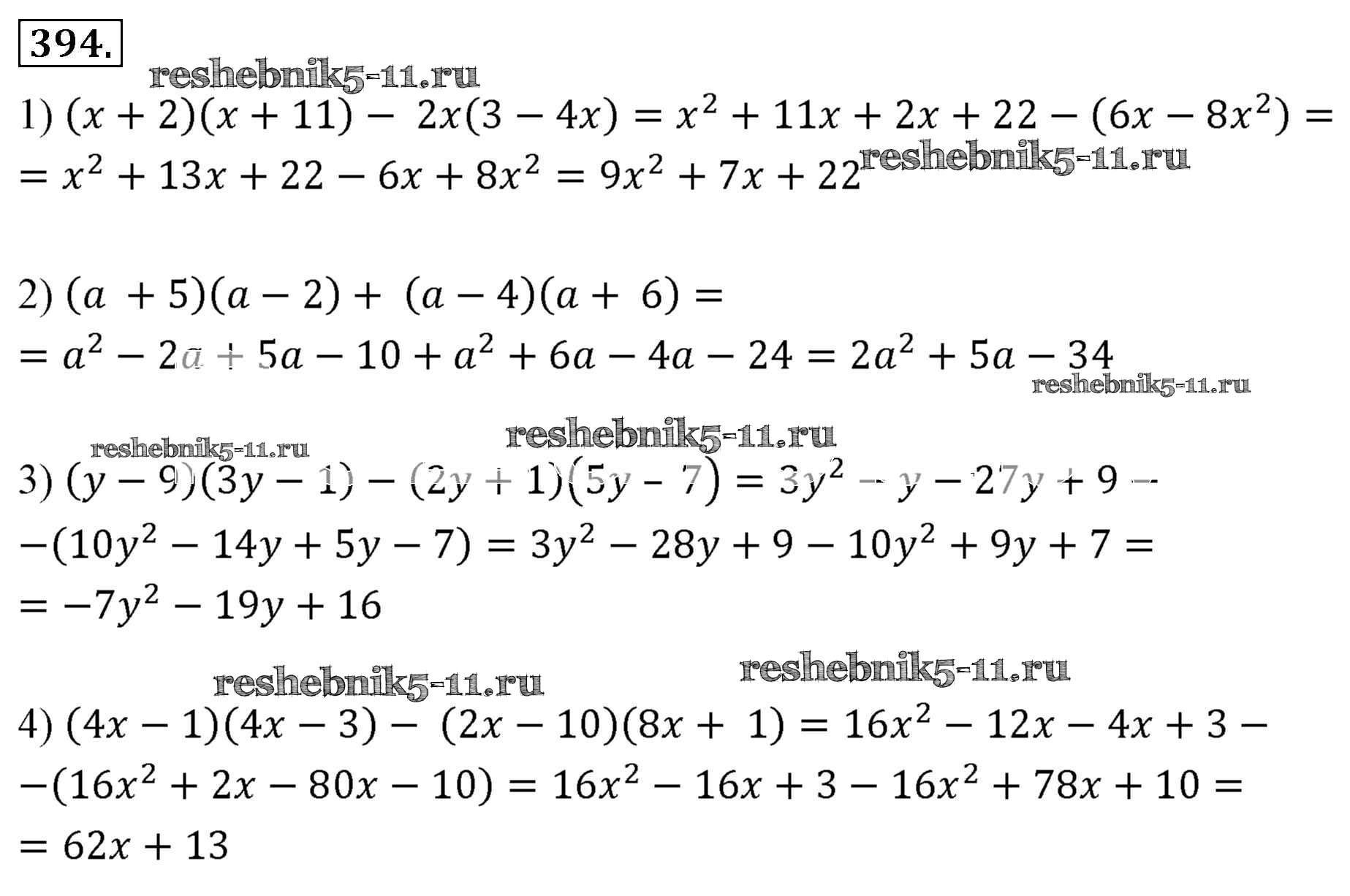 Готовая домашняя работа с ответами по Алгебре за 7 класс Мерзляк, Полонский, Якир Учебник Алгоритм успеха Базовый уровень Вентана-граф 2016 ФГОС - Упражнения 394