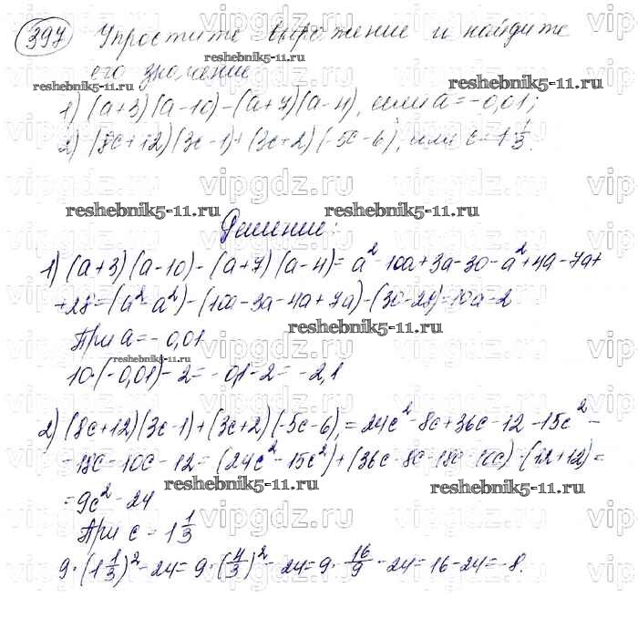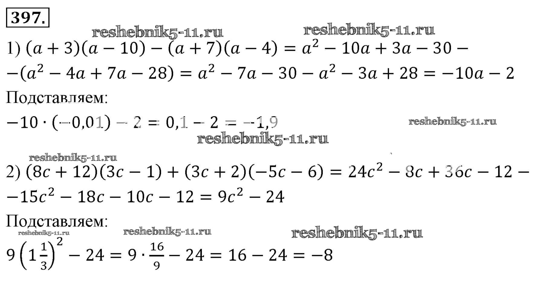 Готовая домашняя работа с ответами по Алгебре за 7 класс Мерзляк, Полонский, Якир Учебник Алгоритм успеха Базовый уровень Вентана-граф 2016 ФГОС - Упражнения 397