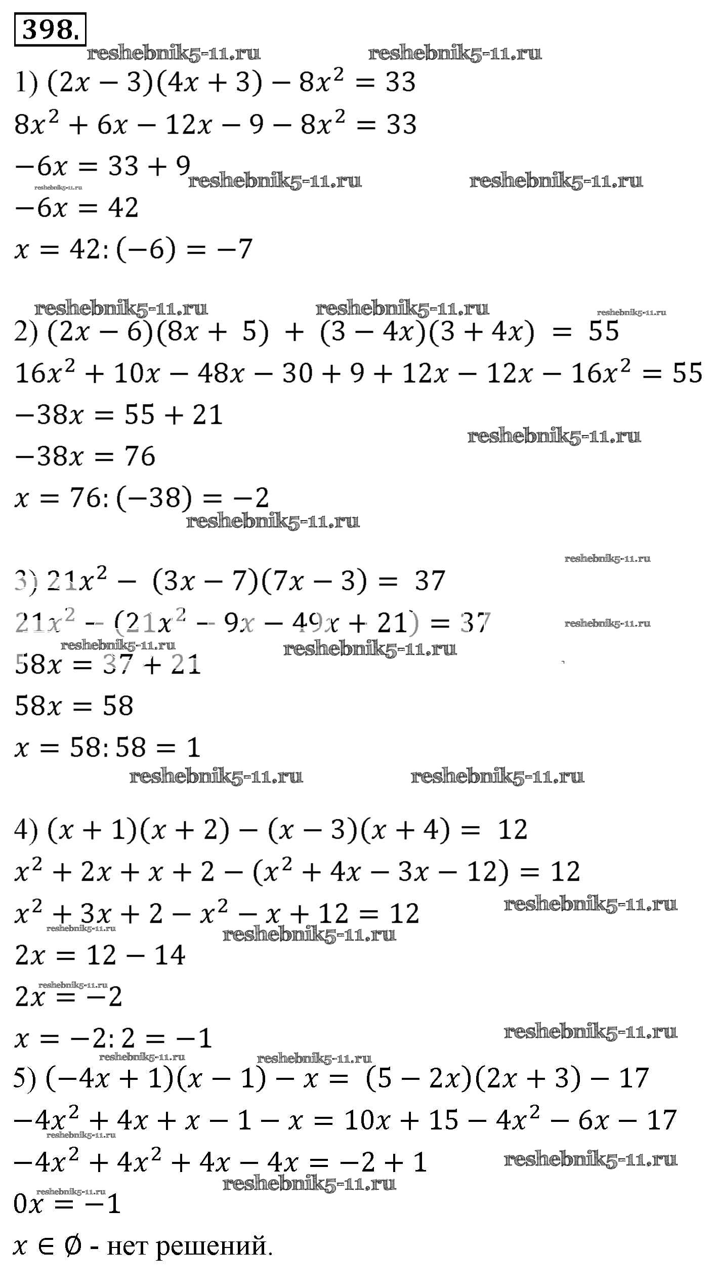 Готовая домашняя работа с ответами по Алгебре за 7 класс Мерзляк, Полонский, Якир Учебник Алгоритм успеха Базовый уровень Вентана-граф 2016 ФГОС - Упражнения 398