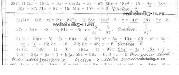 Готовая домашняя работа с ответами по Алгебре за 7 класс Мерзляк, Полонский, Якир Учебник Алгоритм успеха Базовый уровень Вентана-граф 2016 ФГОС - Упражнения 399