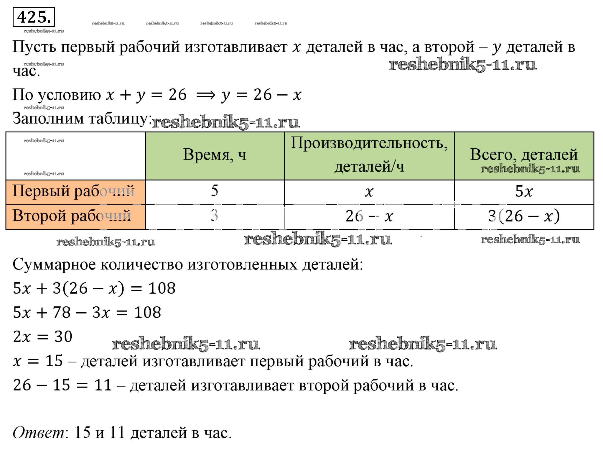 Готовая домашняя работа с ответами по Алгебре за 7 класс Мерзляк, Полонский, Якир Учебник Алгоритм успеха Базовый уровень Вентана-граф 2016 ФГОС - Упражнения 425