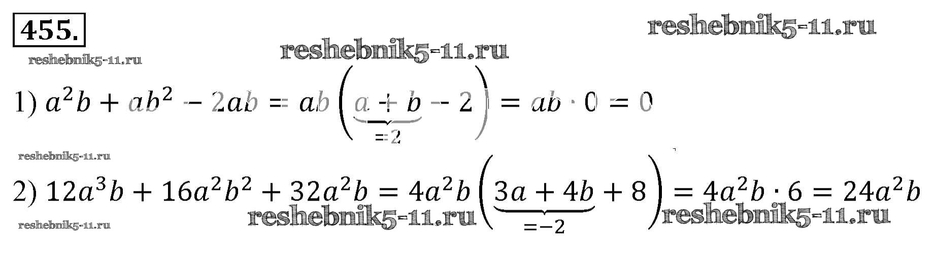 Готовая домашняя работа с ответами по Алгебре за 7 класс Мерзляк, Полонский, Якир Учебник Алгоритм успеха Базовый уровень Вентана-граф 2016 ФГОС - Упражнения 455