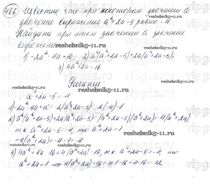 Готовая домашняя работа с ответами по Алгебре за 7 класс Мерзляк, Полонский, Якир Учебник Алгоритм успеха Базовый уровень Вентана-граф 2016 ФГОС - Упражнения 466