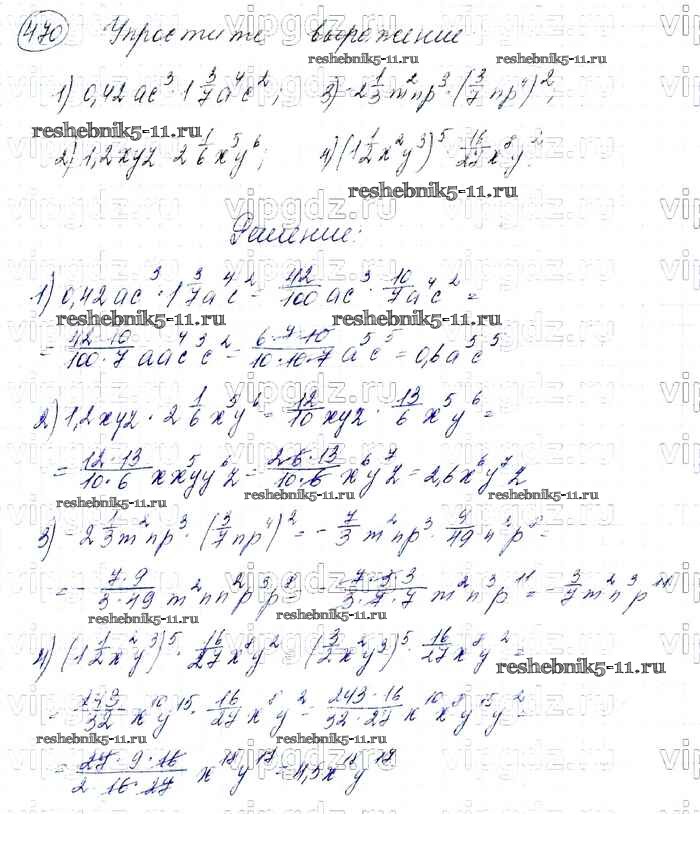 Готовая домашняя работа с ответами по Алгебре за 7 класс Мерзляк, Полонский, Якир Учебник Алгоритм успеха Базовый уровень Вентана-граф 2016 ФГОС - Упражнения 470