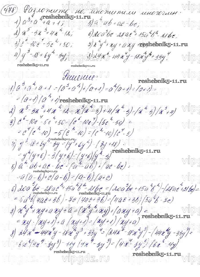 Готовая домашняя работа с ответами по Алгебре за 7 класс Мерзляк, Полонский, Якир Учебник Алгоритм успеха Базовый уровень Вентана-граф 2016 ФГОС - Упражнения 478