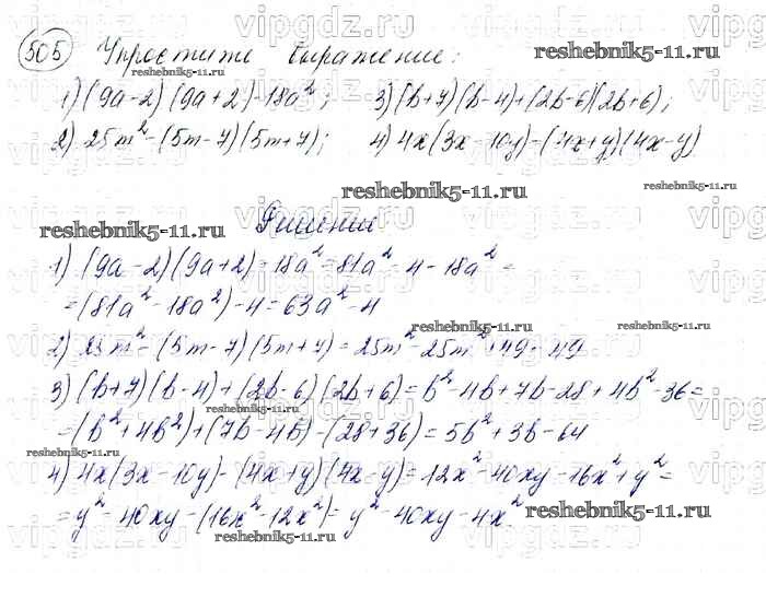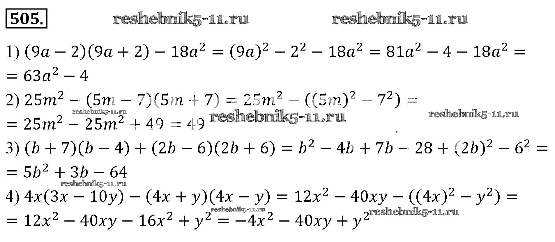Готовая домашняя работа с ответами по Алгебре за 7 класс Мерзляк, Полонский, Якир Учебник Алгоритм успеха Базовый уровень Вентана-граф 2016 ФГОС - Упражнения 505