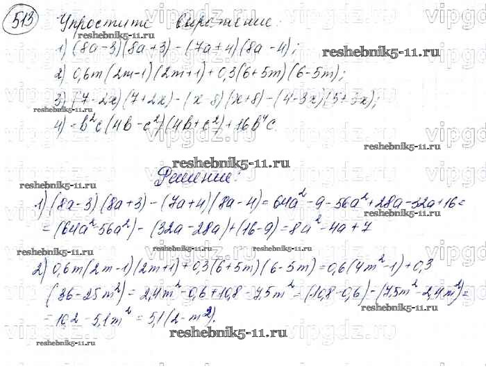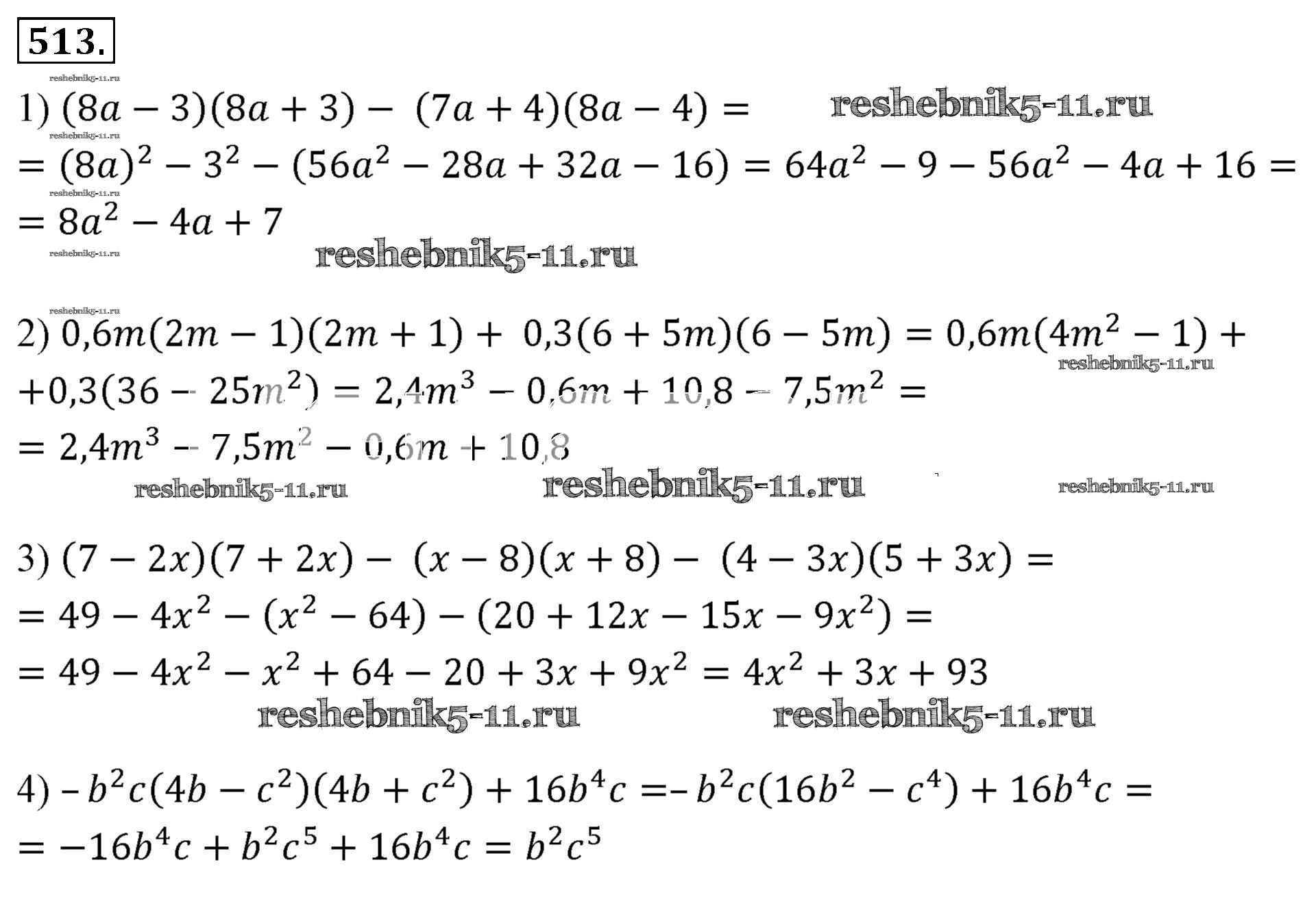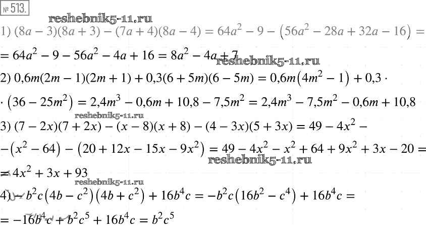 Готовая домашняя работа с ответами по Алгебре за 7 класс Мерзляк, Полонский, Якир Учебник Алгоритм успеха Базовый уровень Вентана-граф 2016 ФГОС - Упражнения 513