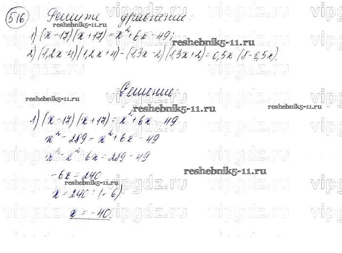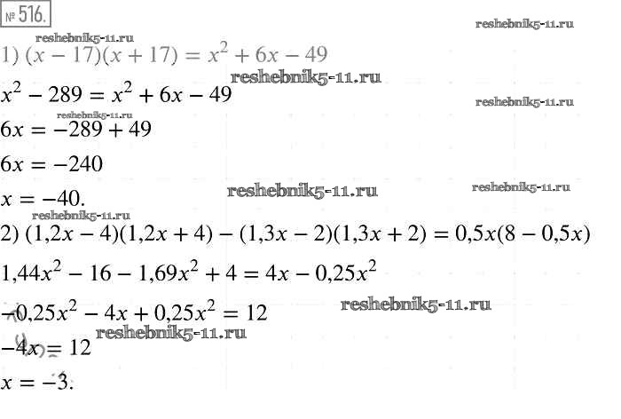 Готовая домашняя работа с ответами по Алгебре за 7 класс Мерзляк, Полонский, Якир Учебник Алгоритм успеха Базовый уровень Вентана-граф 2016 ФГОС - Упражнения 516