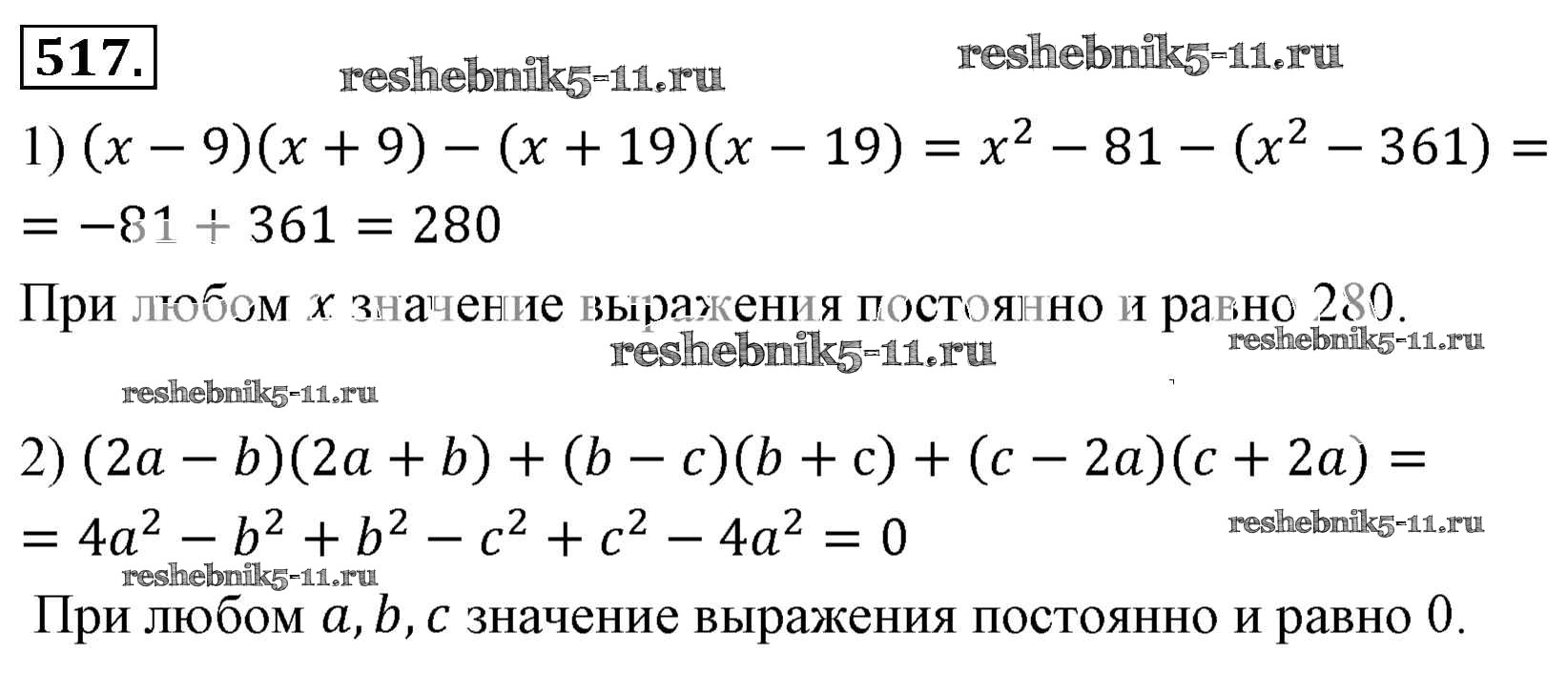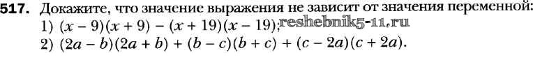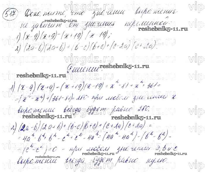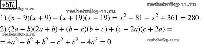 Готовая домашняя работа с ответами по Алгебре за 7 класс Мерзляк, Полонский, Якир Учебник Алгоритм успеха Базовый уровень Вентана-граф 2016 ФГОС - Упражнения 517