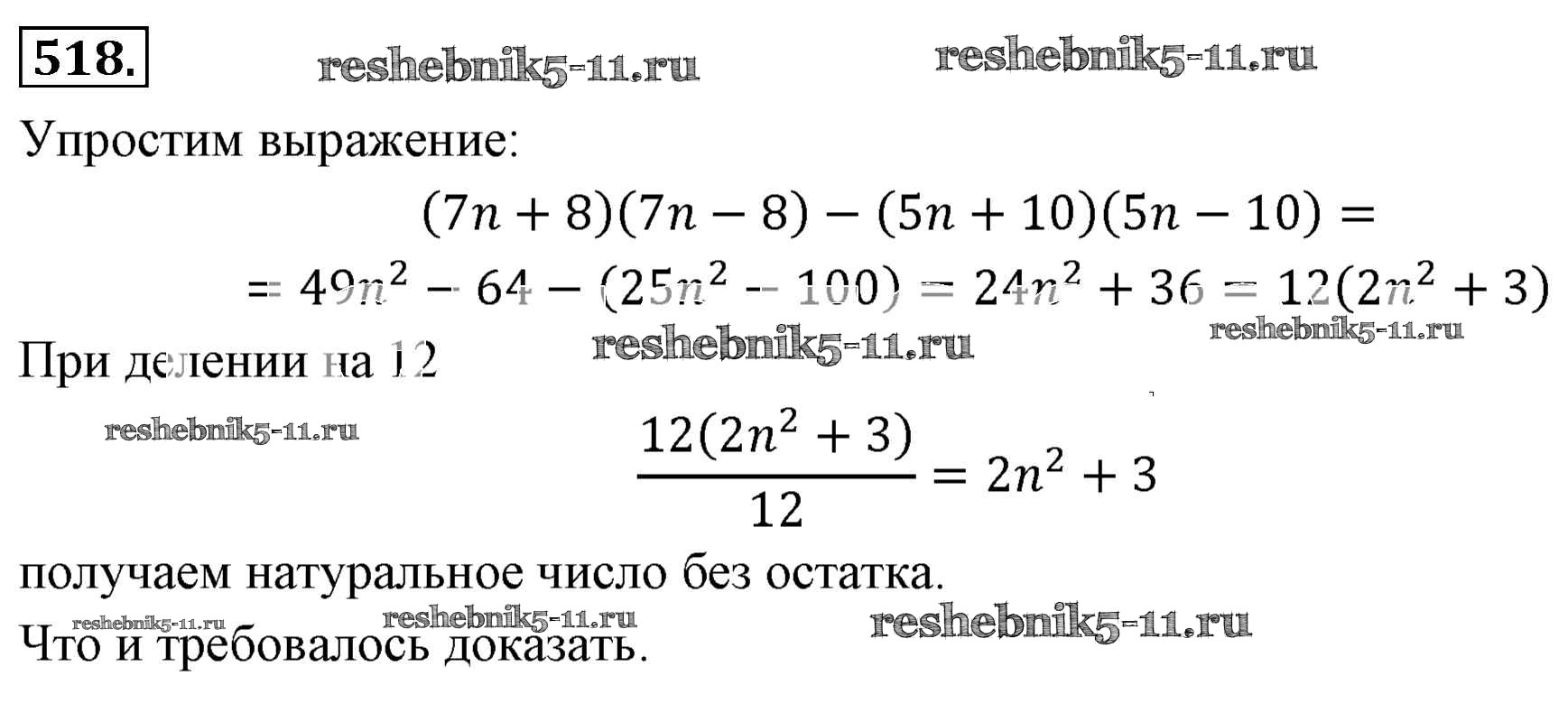 Готовая домашняя работа с ответами по Алгебре за 7 класс Мерзляк, Полонский, Якир Учебник Алгоритм успеха Базовый уровень Вентана-граф 2016 ФГОС - Упражнения 518