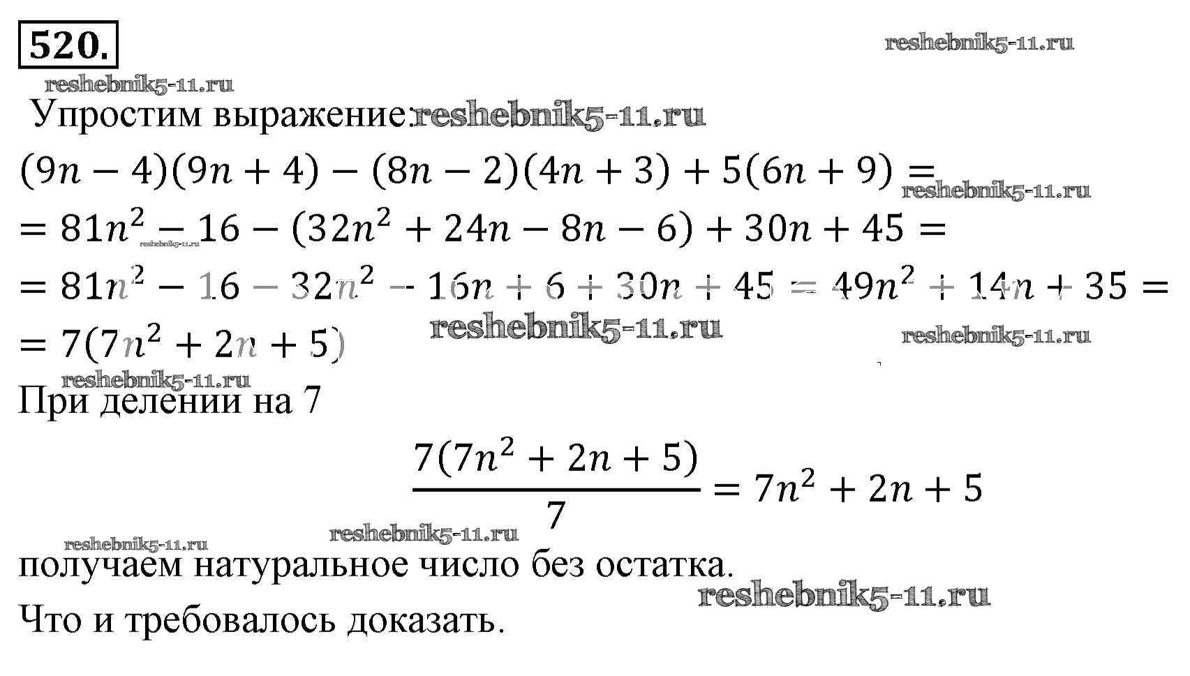 Готовая домашняя работа с ответами по Алгебре за 7 класс Мерзляк, Полонский, Якир Учебник Алгоритм успеха Базовый уровень Вентана-граф 2016 ФГОС - Упражнения 520