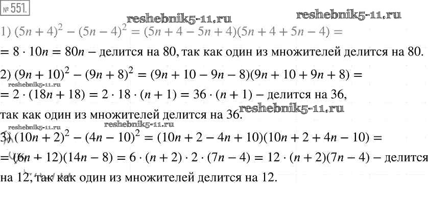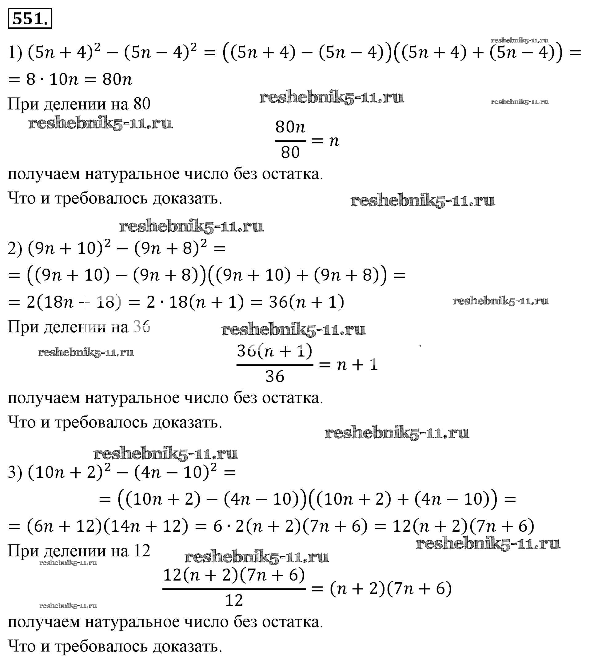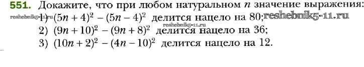 Готовая домашняя работа с ответами по Алгебре за 7 класс Мерзляк, Полонский, Якир Учебник Алгоритм успеха Базовый уровень Вентана-граф 2016 ФГОС - Упражнения 551