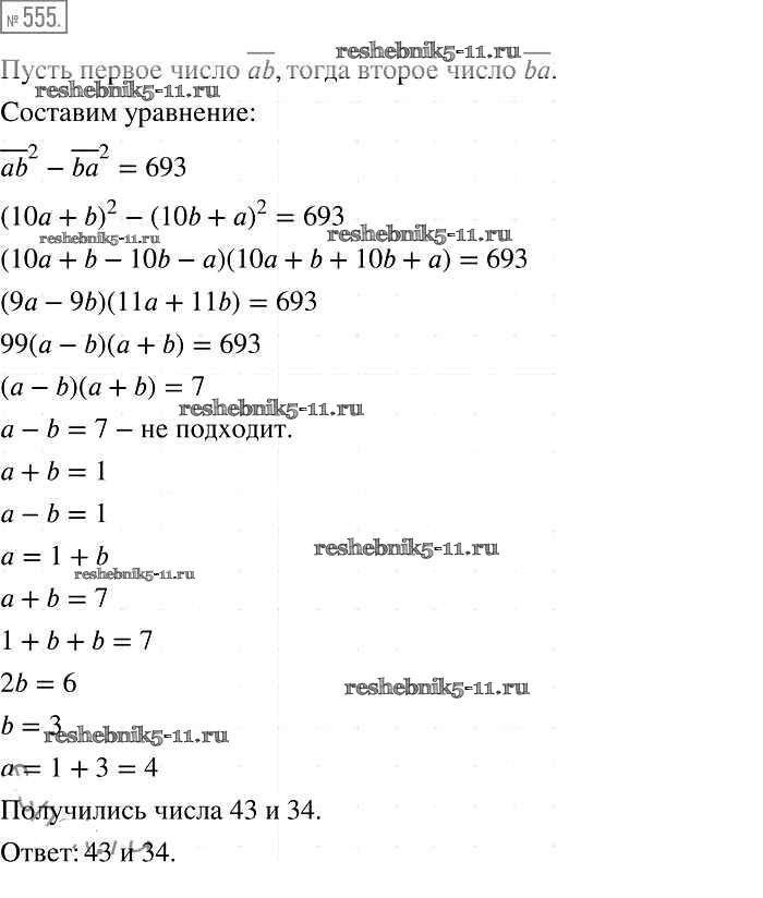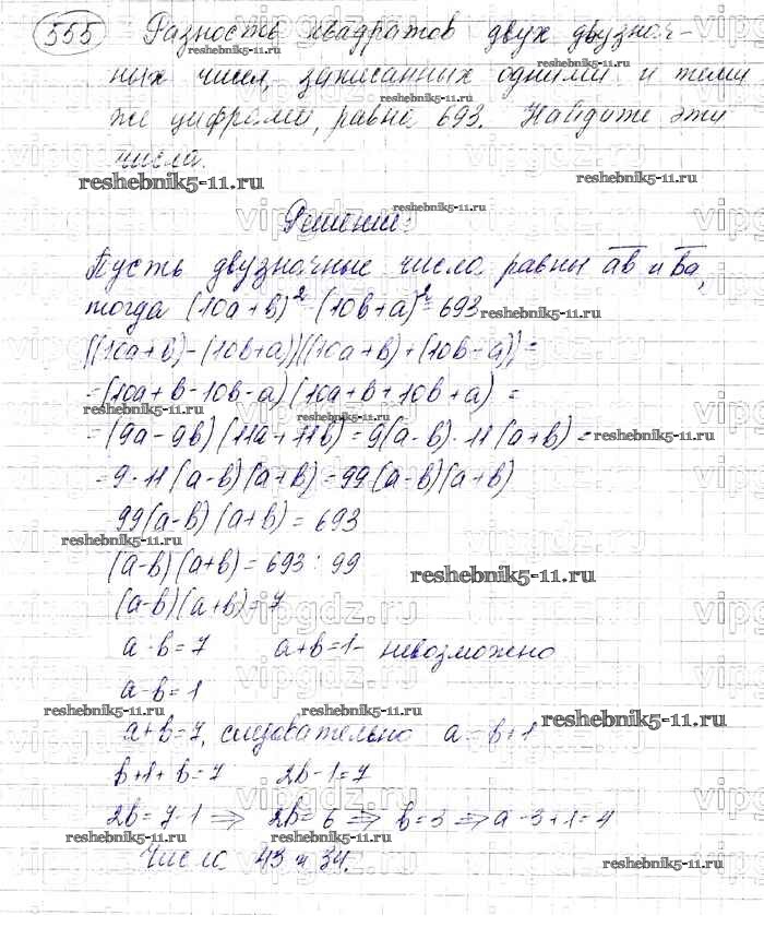 Готовая домашняя работа с ответами по Алгебре за 7 класс Мерзляк, Полонский, Якир Учебник Алгоритм успеха Базовый уровень Вентана-граф 2016 ФГОС - Упражнения 555
