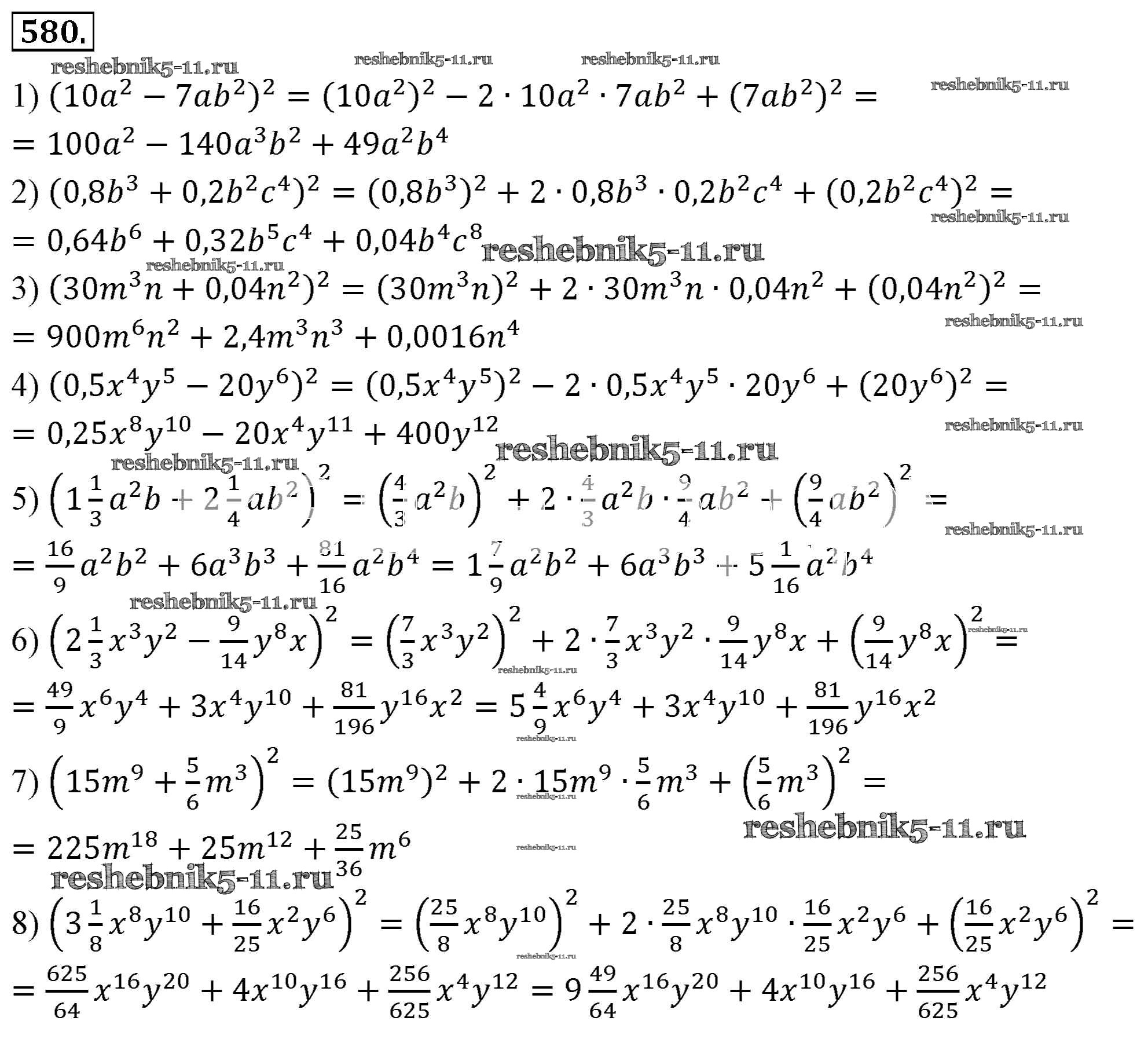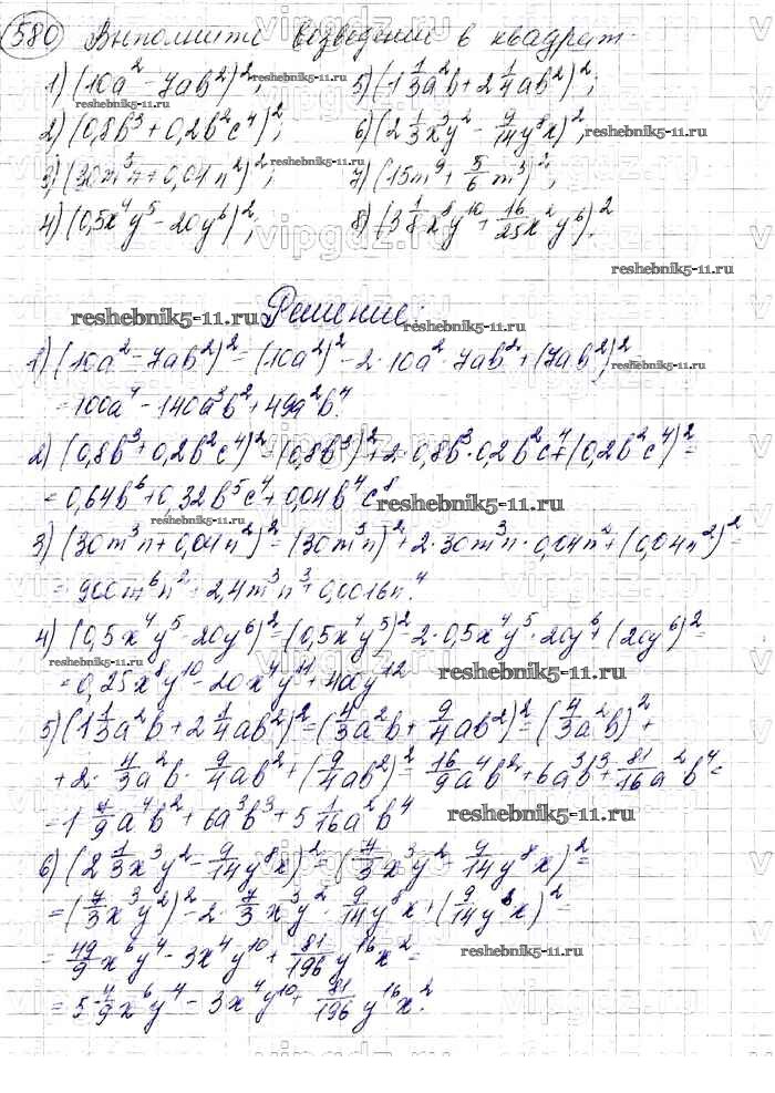 Готовая домашняя работа с ответами по Алгебре за 7 класс Мерзляк, Полонский, Якир Учебник Алгоритм успеха Базовый уровень Вентана-граф 2016 ФГОС - Упражнения 580