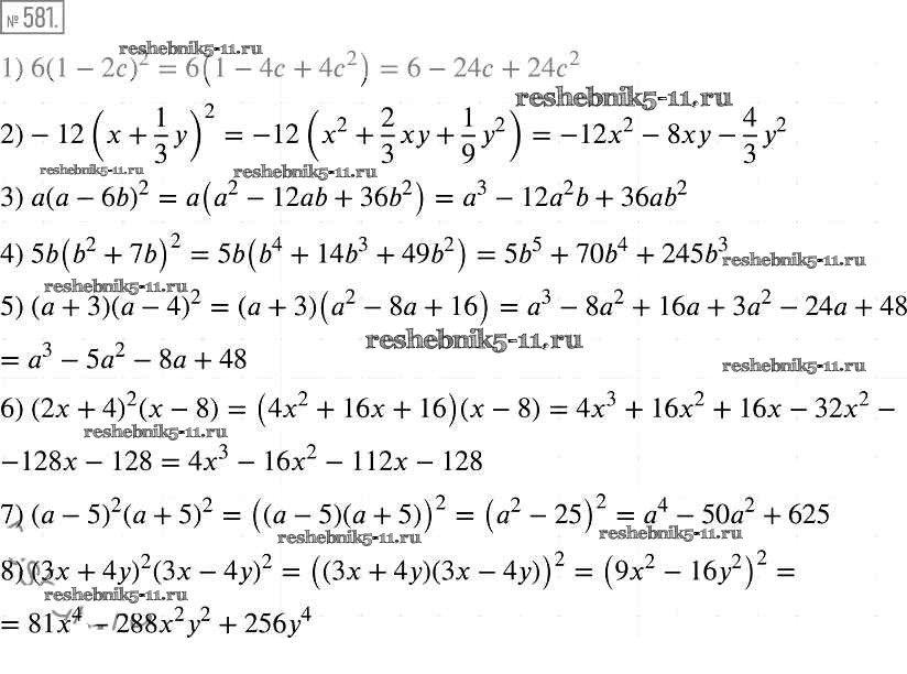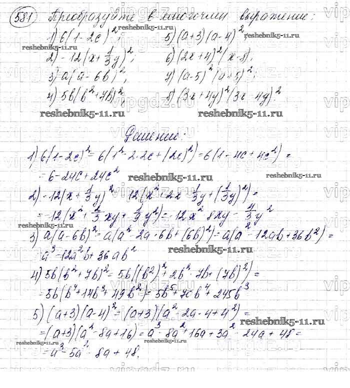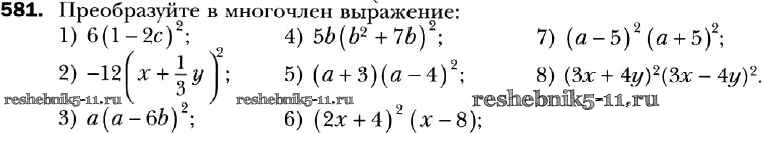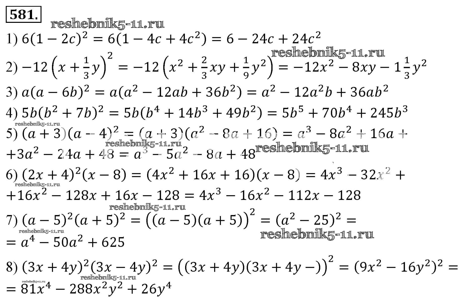Готовая домашняя работа с ответами по Алгебре за 7 класс Мерзляк, Полонский, Якир Учебник Алгоритм успеха Базовый уровень Вентана-граф 2016 ФГОС - Упражнения 581