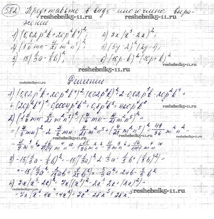 Готовая домашняя работа с ответами по Алгебре за 7 класс Мерзляк, Полонский, Якир Учебник Алгоритм успеха Базовый уровень Вентана-граф 2016 ФГОС - Упражнения 582