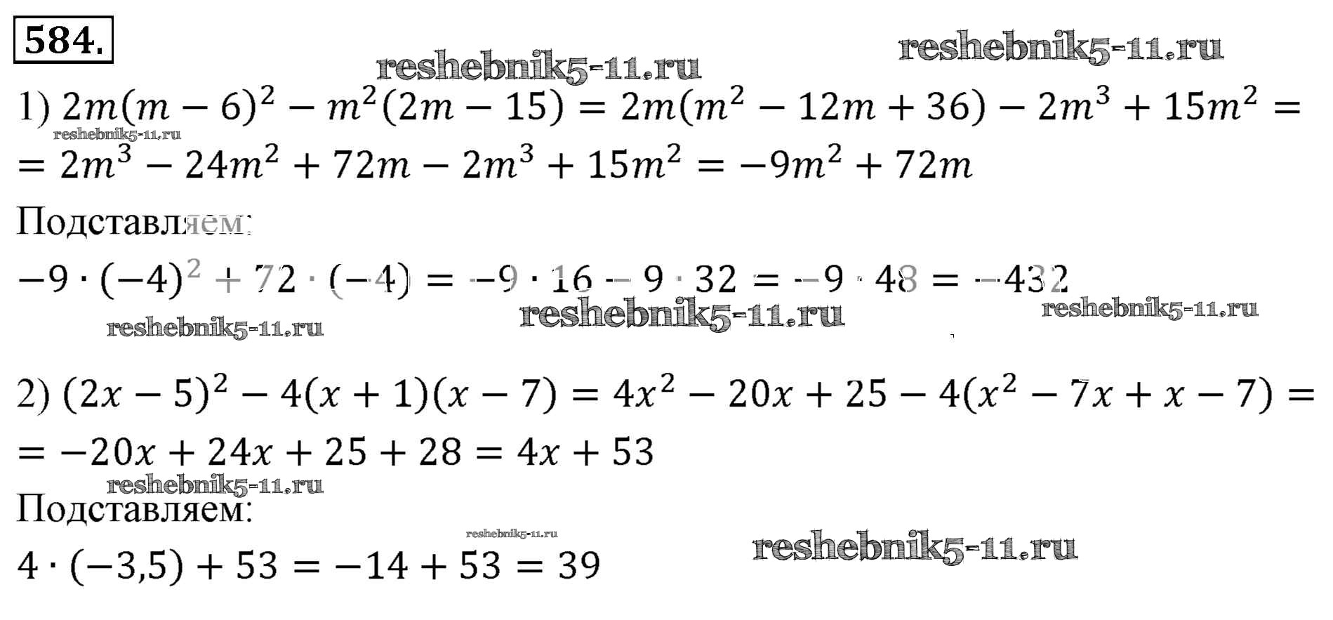 Готовая домашняя работа с ответами по Алгебре за 7 класс Мерзляк, Полонский, Якир Учебник Алгоритм успеха Базовый уровень Вентана-граф 2016 ФГОС - Упражнения 584