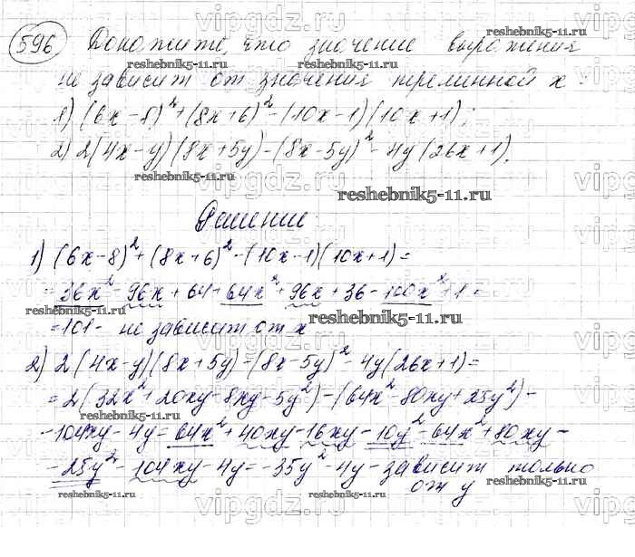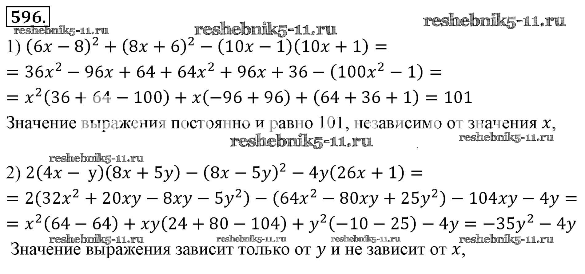 Готовая домашняя работа с ответами по Алгебре за 7 класс Мерзляк, Полонский, Якир Учебник Алгоритм успеха Базовый уровень Вентана-граф 2016 ФГОС - Упражнения 596