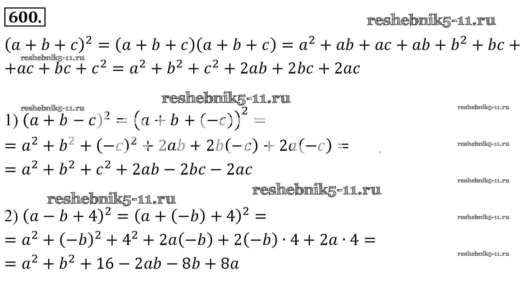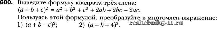 Готовая домашняя работа с ответами по Алгебре за 7 класс Мерзляк, Полонский, Якир Учебник Алгоритм успеха Базовый уровень Вентана-граф 2016 ФГОС - Упражнения 600
