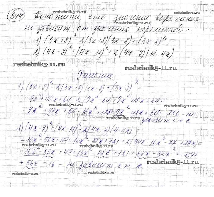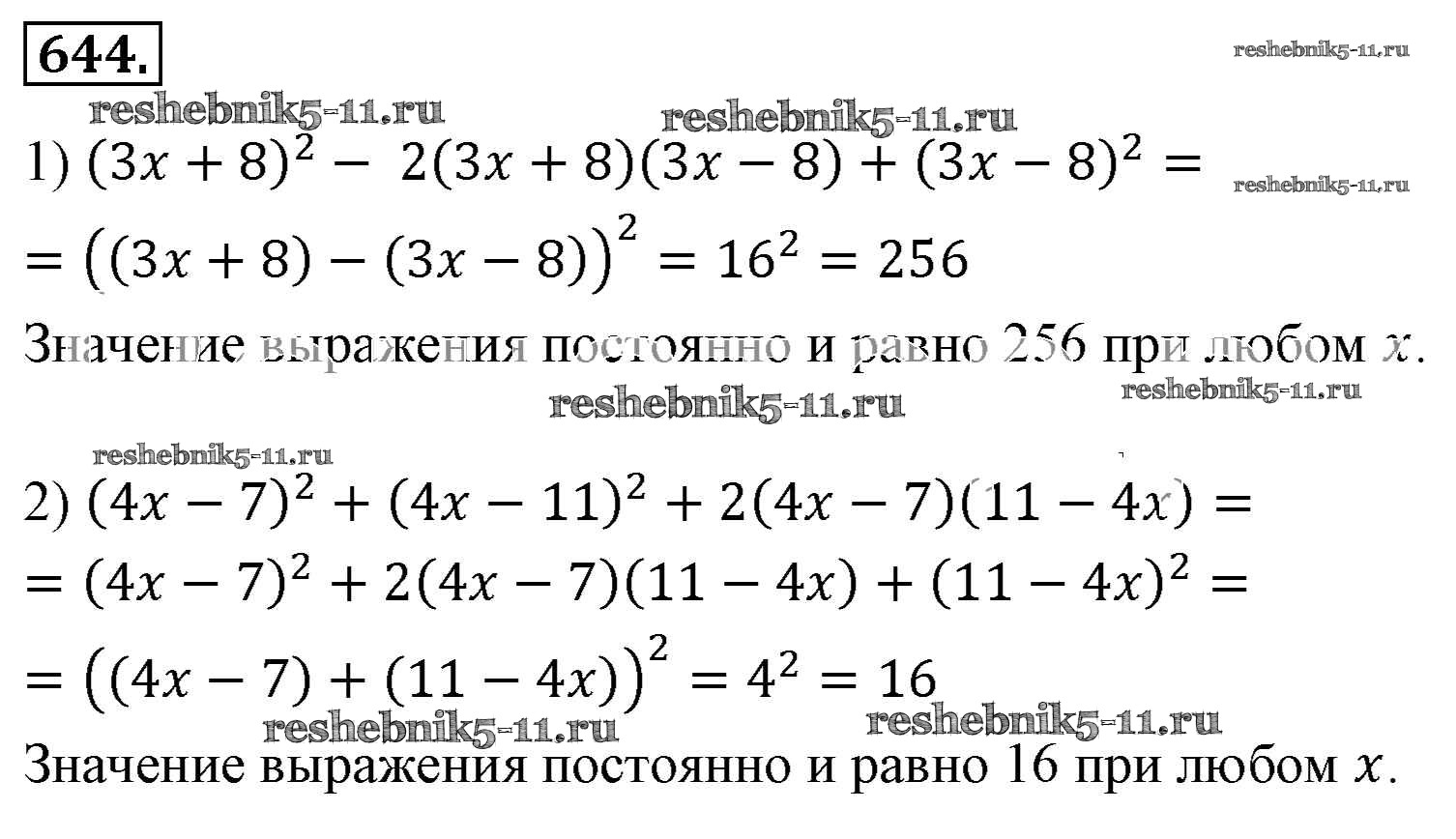 Готовая домашняя работа с ответами по Алгебре за 7 класс Мерзляк, Полонский, Якир Учебник Алгоритм успеха Базовый уровень Вентана-граф 2016 ФГОС - Упражнения 644