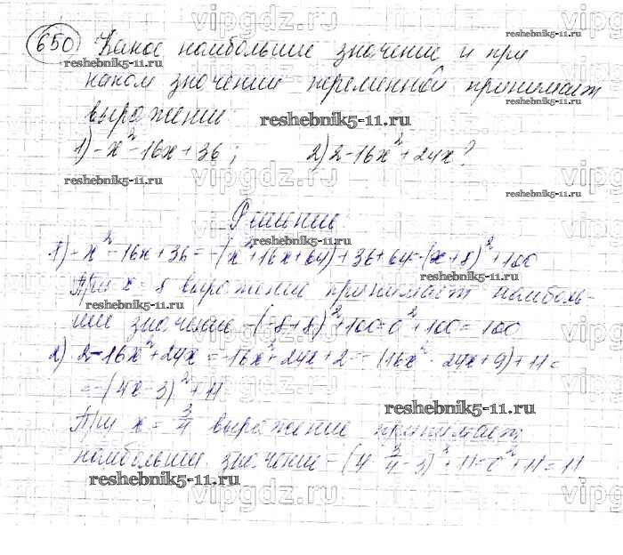 Готовая домашняя работа с ответами по Алгебре за 7 класс Мерзляк, Полонский, Якир Учебник Алгоритм успеха Базовый уровень Вентана-граф 2016 ФГОС - Упражнения 650