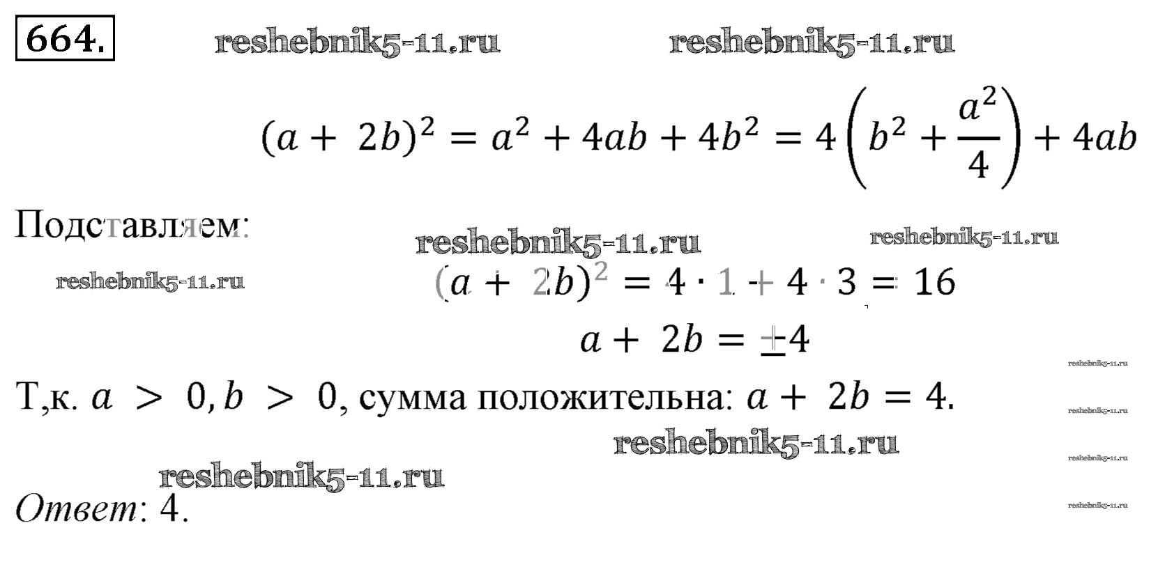 Готовая домашняя работа с ответами по Алгебре за 7 класс Мерзляк, Полонский, Якир Учебник Алгоритм успеха Базовый уровень Вентана-граф 2016 ФГОС - Упражнения 664