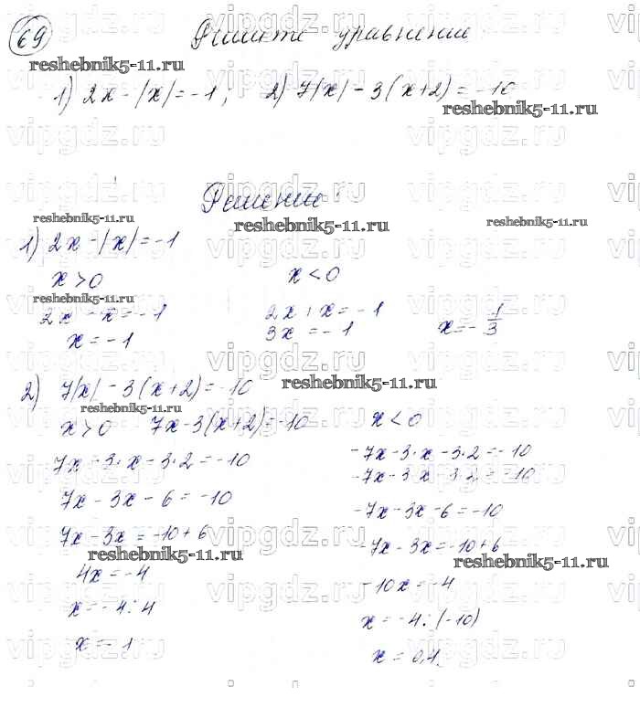 Готовая домашняя работа с ответами по Алгебре за 7 класс Мерзляк, Полонский, Якир Учебник Алгоритм успеха Базовый уровень Вентана-граф 2016 ФГОС - Упражнения 69