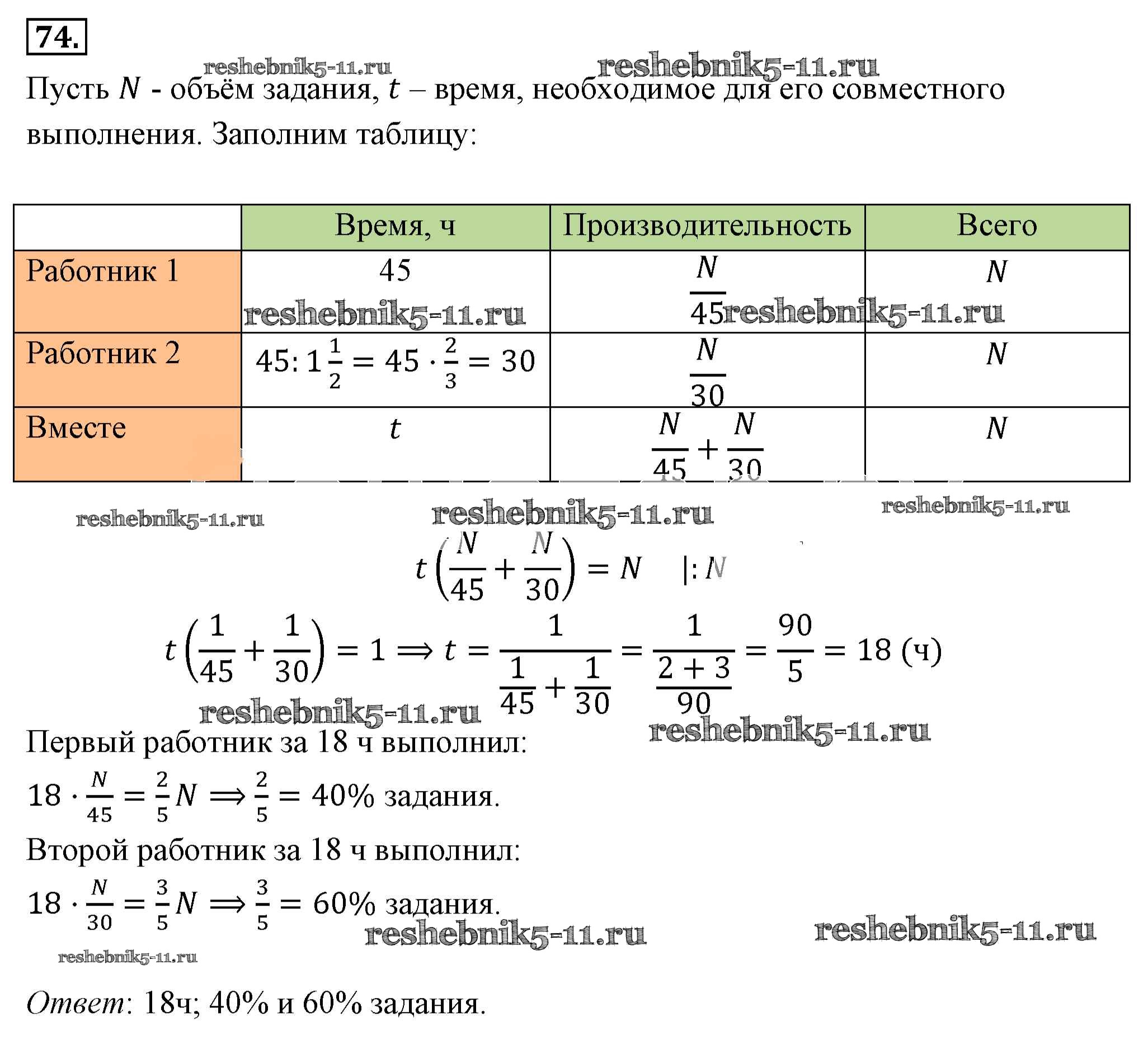 Готовая домашняя работа с ответами по Алгебре за 7 класс Мерзляк, Полонский, Якир Учебник Алгоритм успеха Базовый уровень Вентана-граф 2016 ФГОС - Упражнения 74