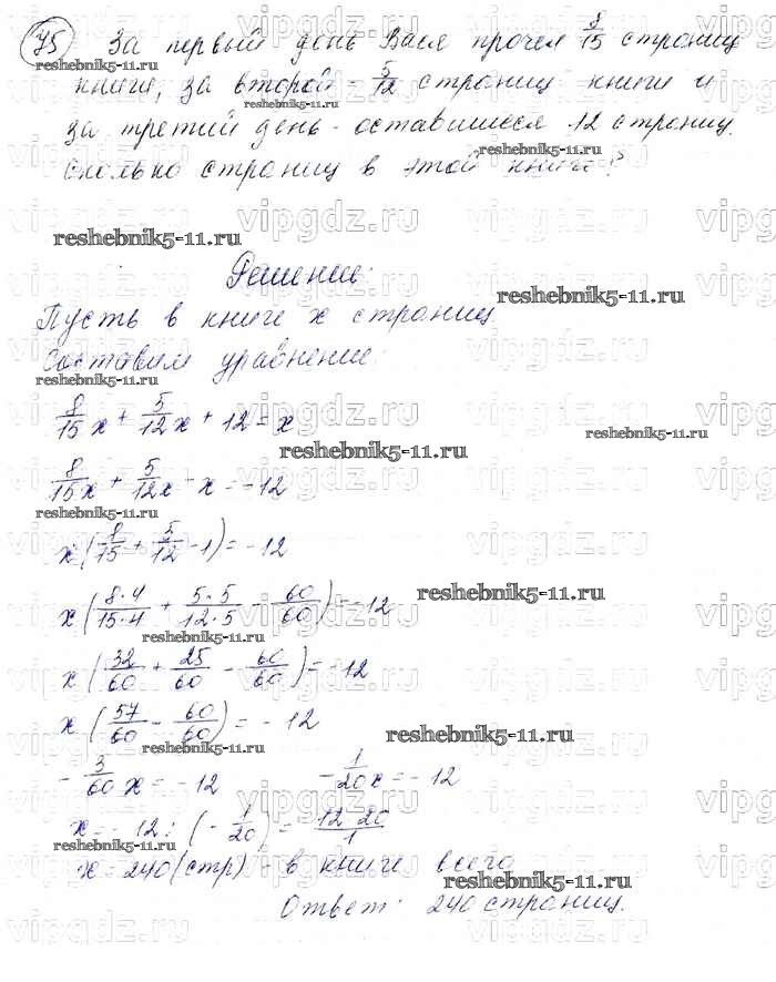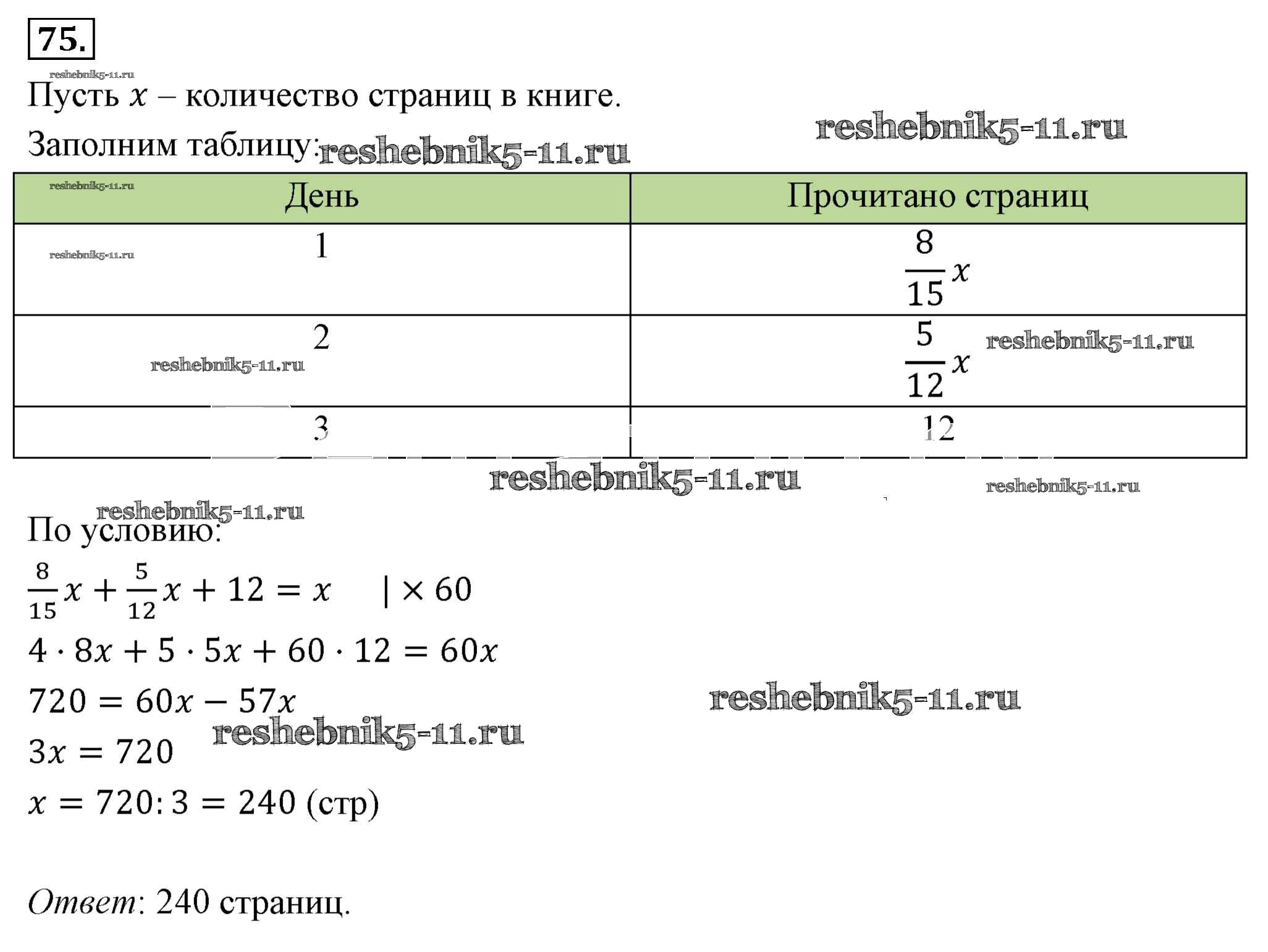 Готовая домашняя работа с ответами по Алгебре за 7 класс Мерзляк, Полонский, Якир Учебник Алгоритм успеха Базовый уровень Вентана-граф 2016 ФГОС - Упражнения 75