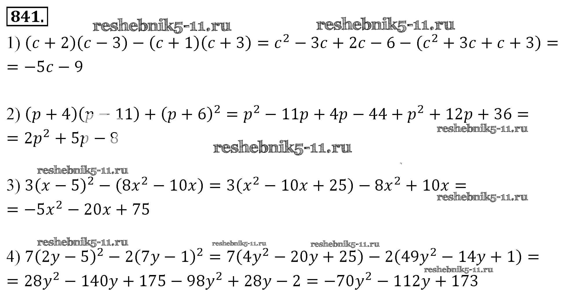 Готовая домашняя работа с ответами по Алгебре за 7 класс Мерзляк, Полонский, Якир Учебник Алгоритм успеха Базовый уровень Вентана-граф 2016 ФГОС - Упражнения 841