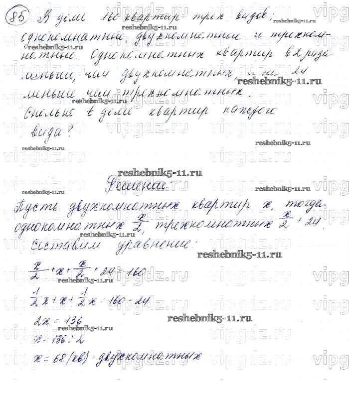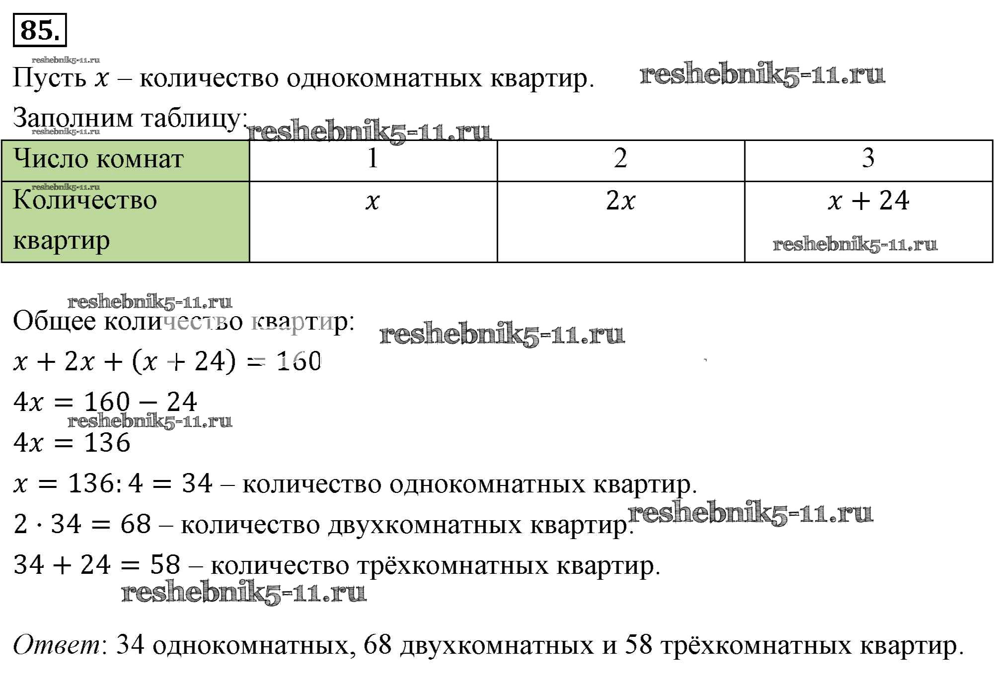 Готовая домашняя работа с ответами по Алгебре за 7 класс Мерзляк, Полонский, Якир Учебник Алгоритм успеха Базовый уровень Вентана-граф 2016 ФГОС - Упражнения 85