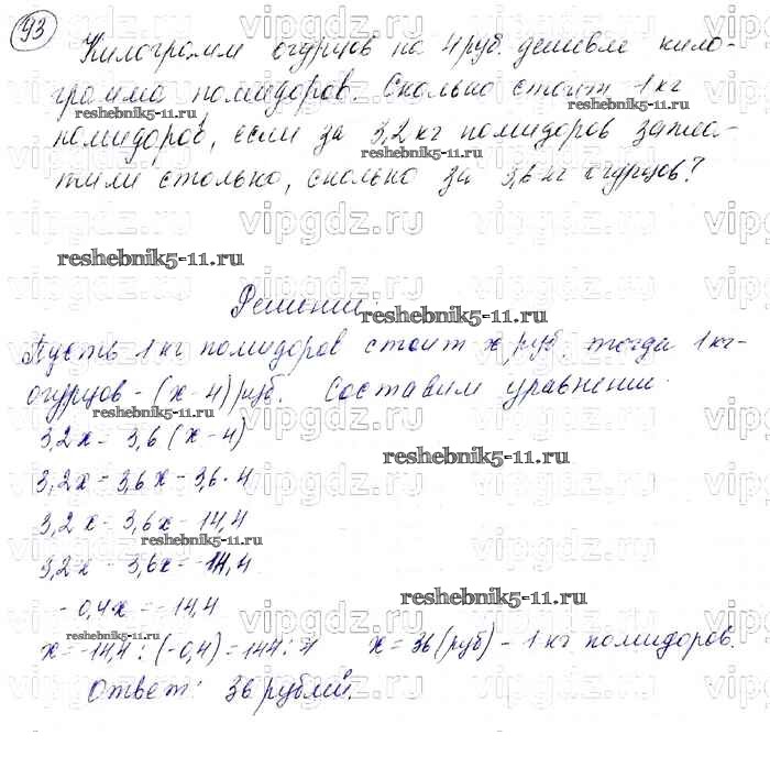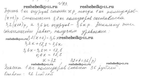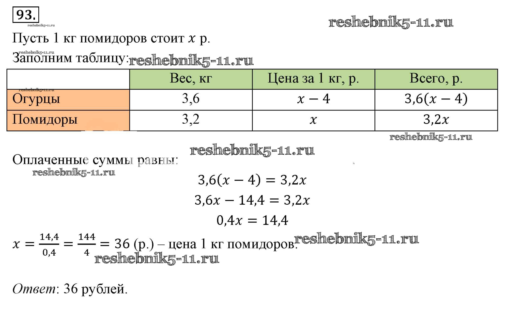 Готовая домашняя работа с ответами по Алгебре за 7 класс Мерзляк, Полонский, Якир Учебник Алгоритм успеха Базовый уровень Вентана-граф 2016 ФГОС - Упражнения 93