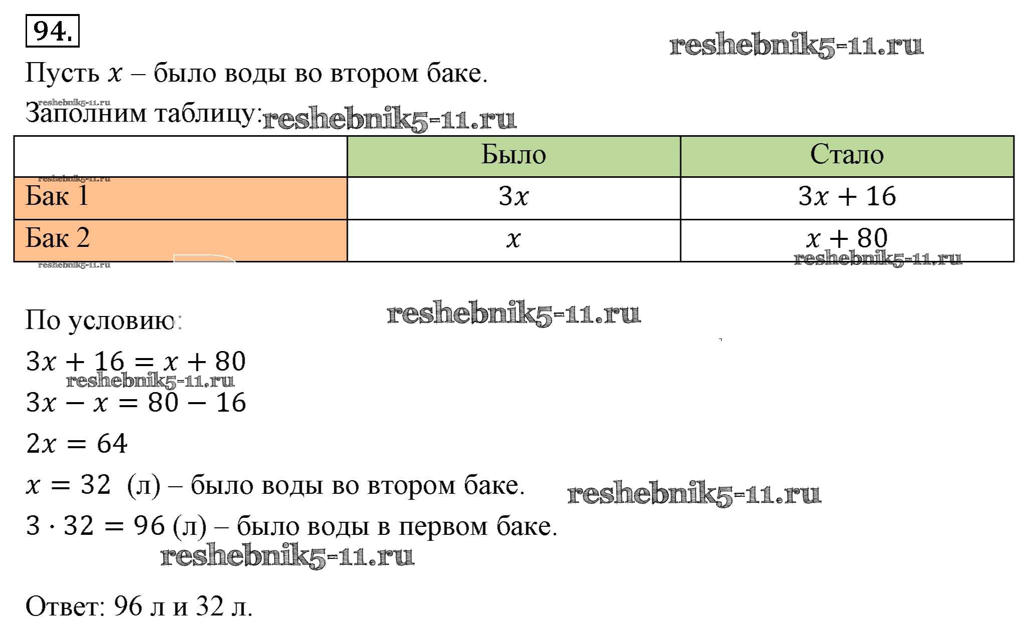 Готовая домашняя работа с ответами по Алгебре за 7 класс Мерзляк, Полонский, Якир Учебник Алгоритм успеха Базовый уровень Вентана-граф 2016 ФГОС - Упражнения 94