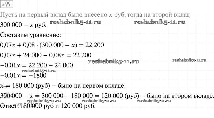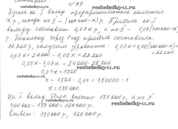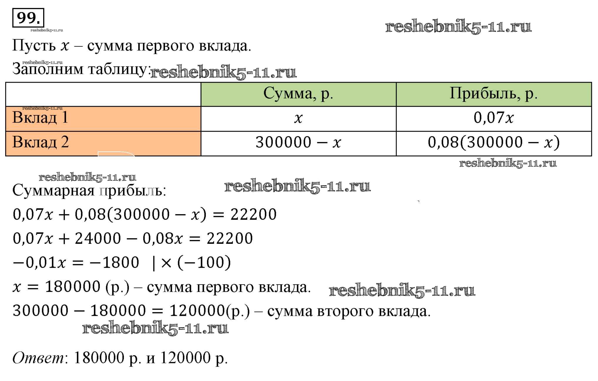 Готовая домашняя работа с ответами по Алгебре за 7 класс Мерзляк, Полонский, Якир Учебник Алгоритм успеха Базовый уровень Вентана-граф 2016 ФГОС - Упражнения 99