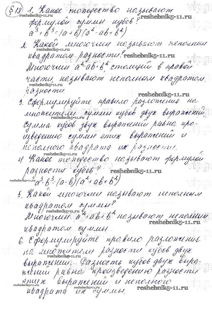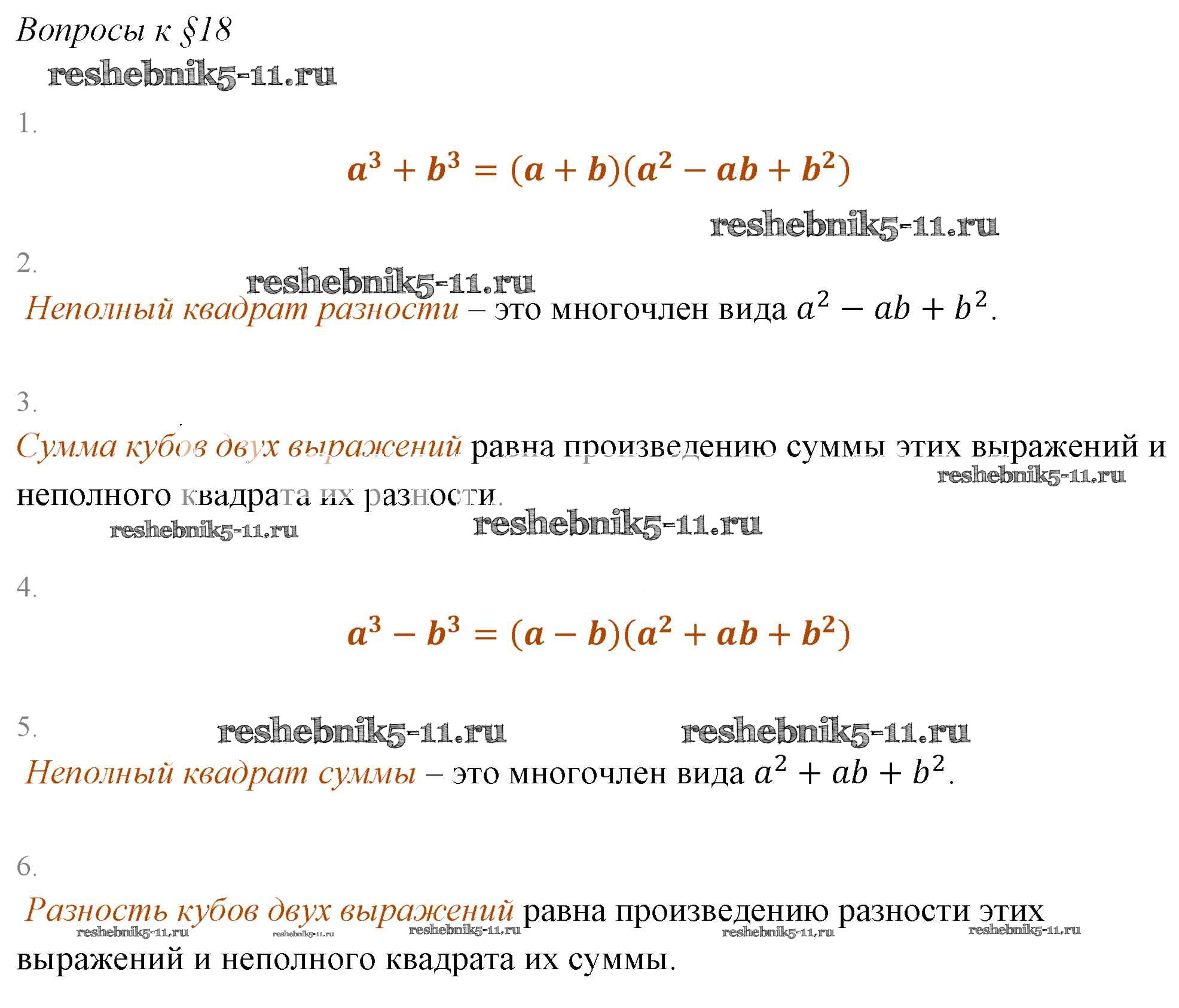 Готовая домашняя работа с ответами по Алгебре за 7 класс Мерзляк, Полонский, Якир Учебник Алгоритм успеха Базовый уровень Вентана-граф 2016 ФГОС - Вопросы к параграфам 18