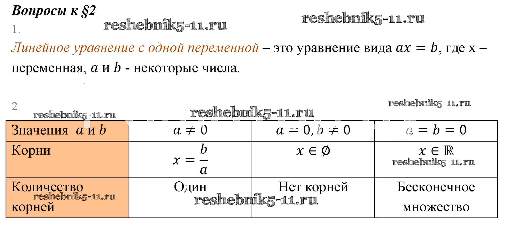 Готовая домашняя работа с ответами по Алгебре за 7 класс Мерзляк, Полонский, Якир Учебник Алгоритм успеха Базовый уровень Вентана-граф 2016 ФГОС - Вопросы к параграфам 2