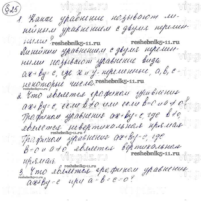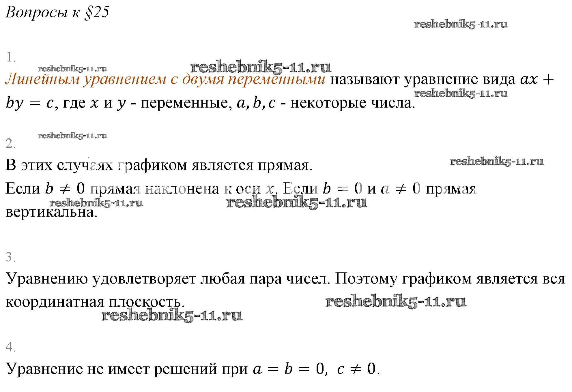 Готовая домашняя работа с ответами по Алгебре за 7 класс Мерзляк, Полонский, Якир Учебник Алгоритм успеха Базовый уровень Вентана-граф 2016 ФГОС - Вопросы к параграфам 25
