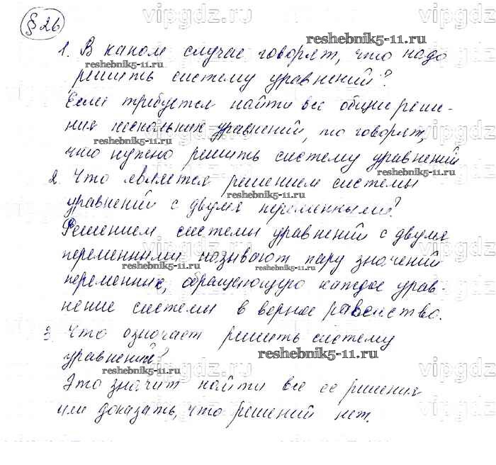 Готовая домашняя работа с ответами по Алгебре за 7 класс Мерзляк, Полонский, Якир Учебник Алгоритм успеха Базовый уровень Вентана-граф 2016 ФГОС - Вопросы к параграфам 26