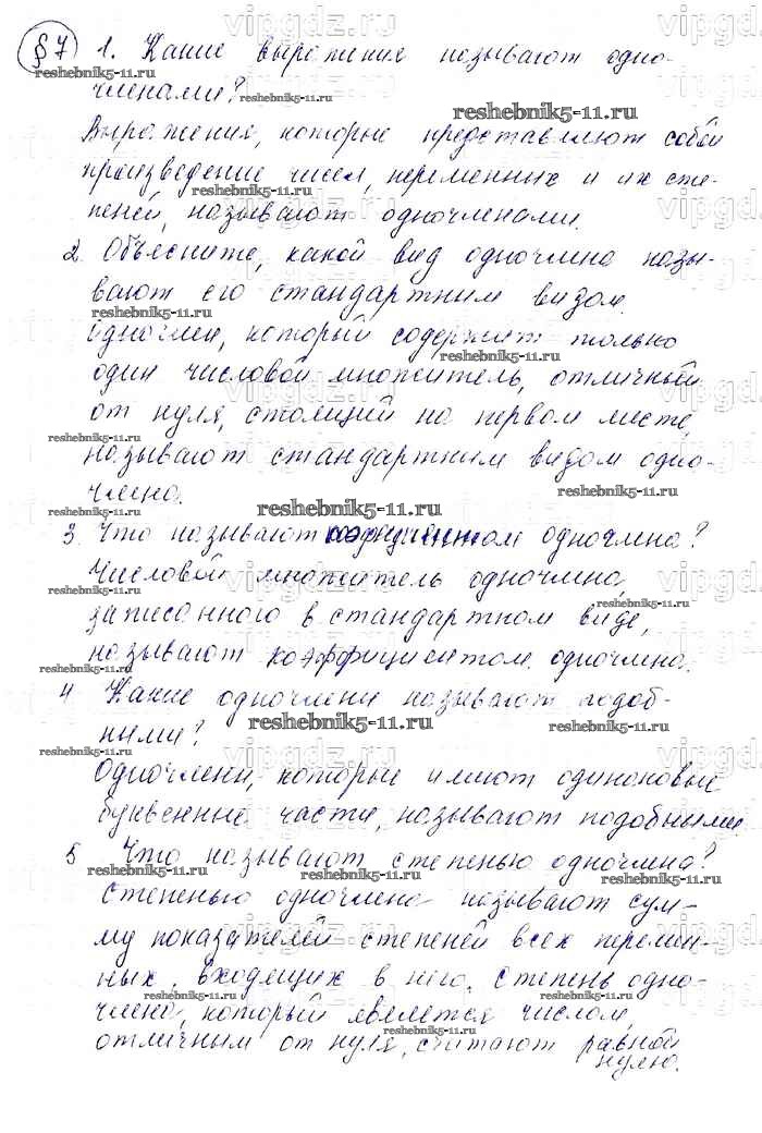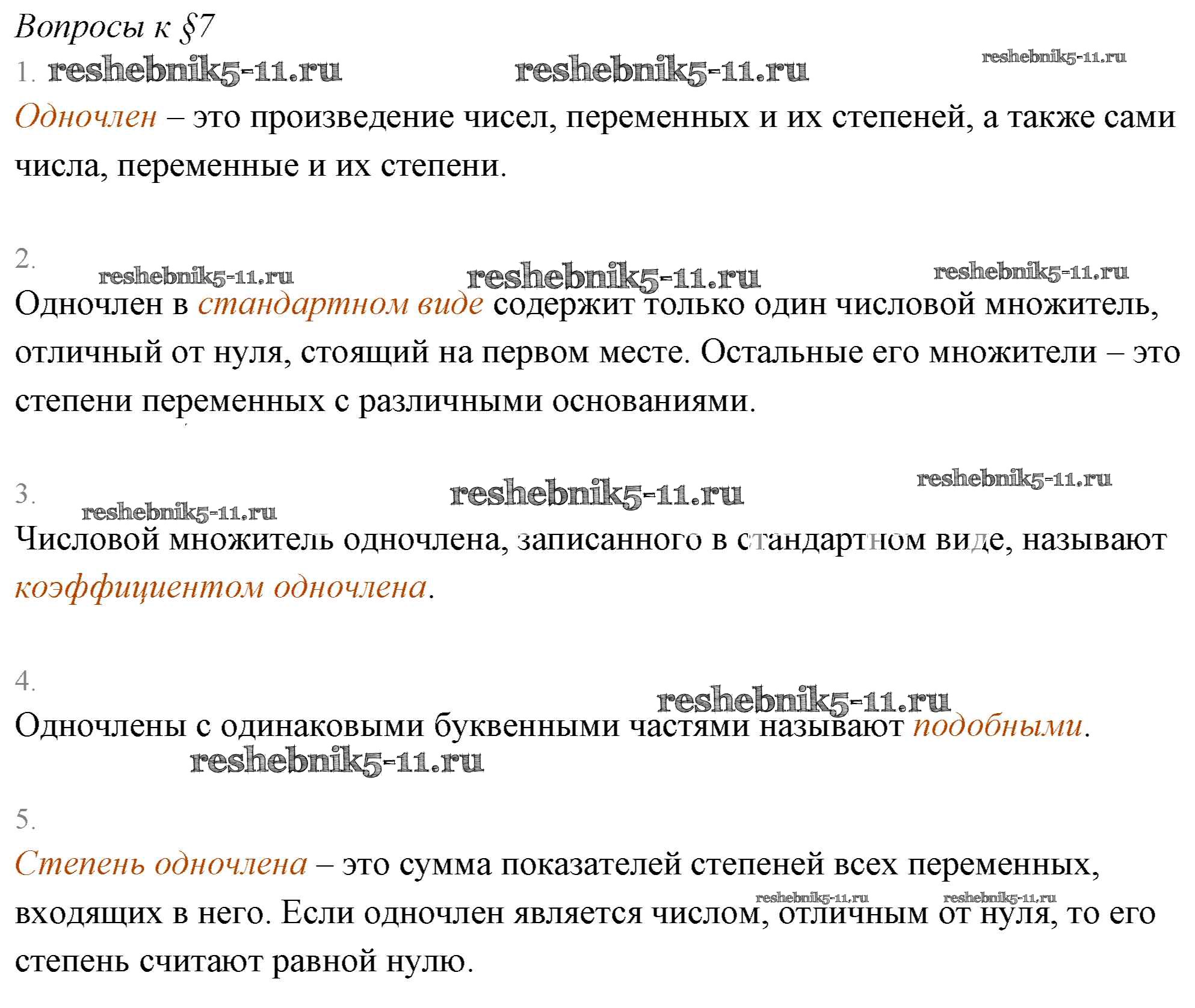 Готовая домашняя работа с ответами по Алгебре за 7 класс Мерзляк, Полонский, Якир Учебник Алгоритм успеха Базовый уровень Вентана-граф 2016 ФГОС - Вопросы к параграфам 7