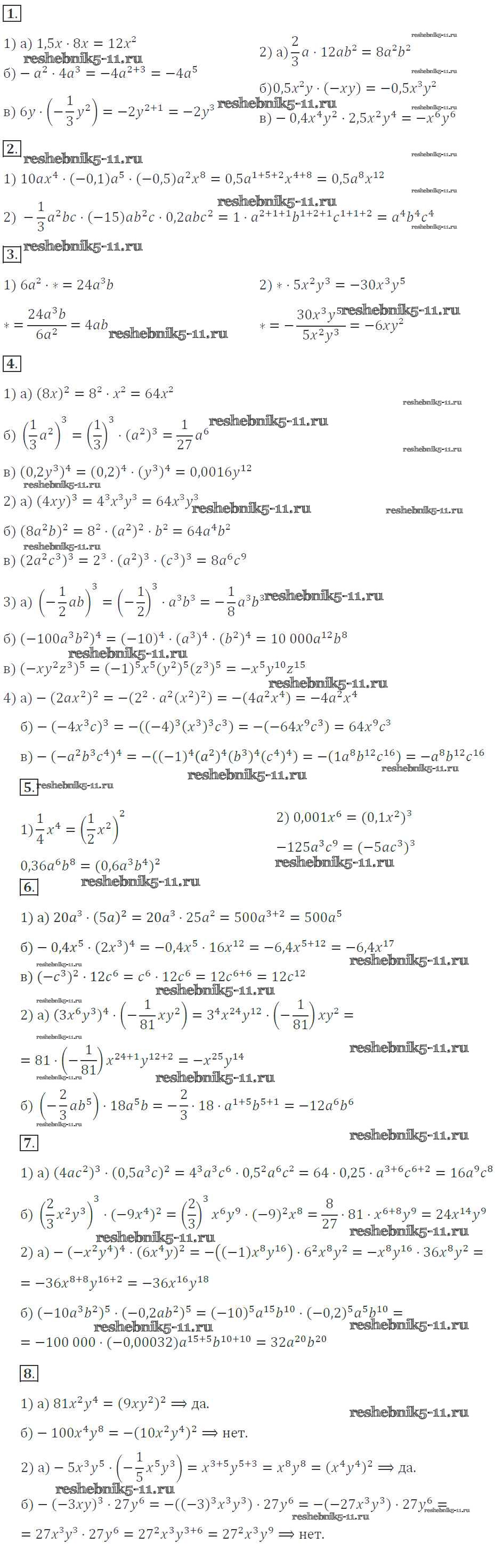 Готовая домашняя работа с ответами по Алгебре за 7 класс Звавич, Кузнецова, Суворова Дидактические материалы Просвещение 2012 ФГОС - Вариант 1 С-24. Умножение многочленов и возведение одночлена в степень