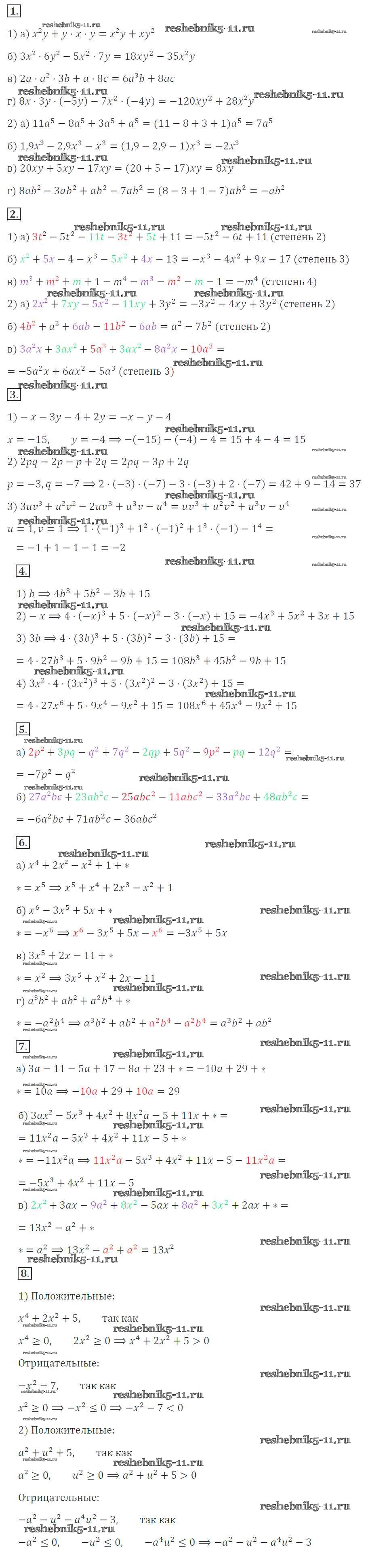 Готовая домашняя работа с ответами по Алгебре за 7 класс Звавич, Кузнецова, Суворова Дидактические материалы Просвещение 2012 ФГОС - Вариант 1 С-25. Приведение многочленов к стандартному виду