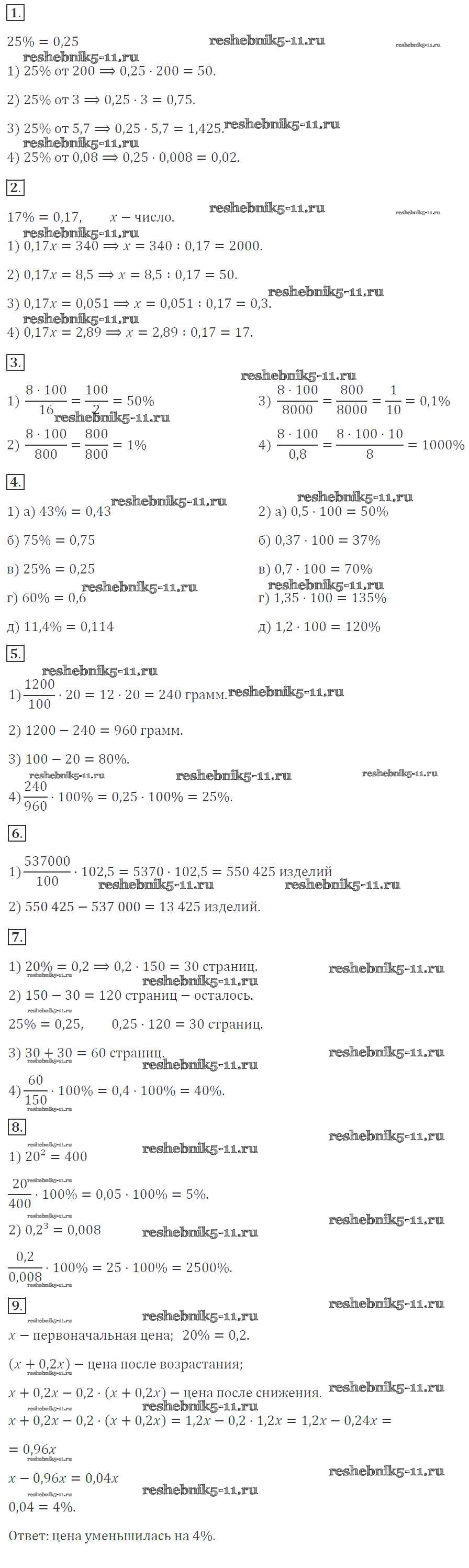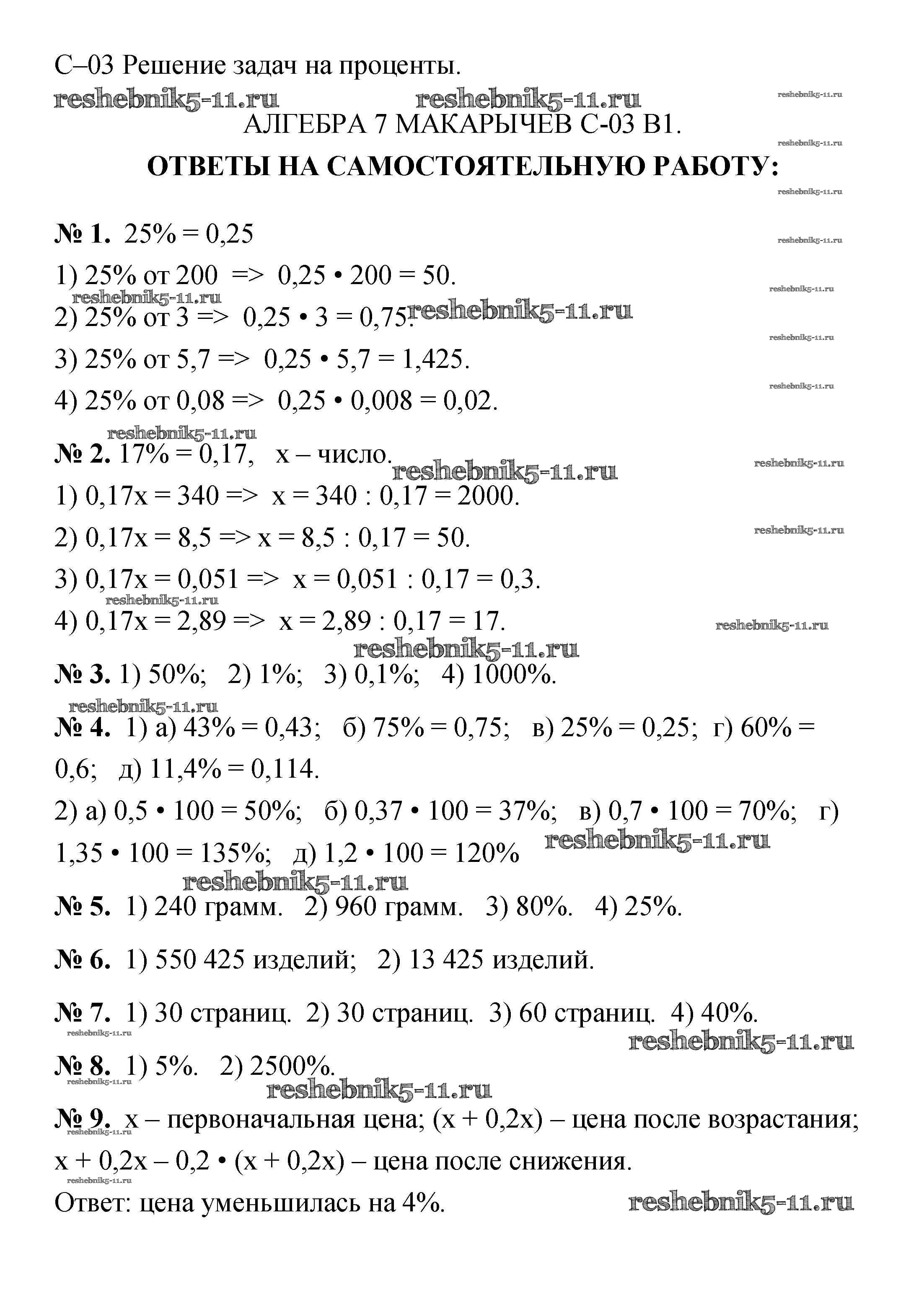 Готовая домашняя работа с ответами по Алгебре за 7 класс Звавич, Кузнецова, Суворова Дидактические материалы Просвещение 2012 ФГОС - Вариант 1 С-3. Решение задач на проценты