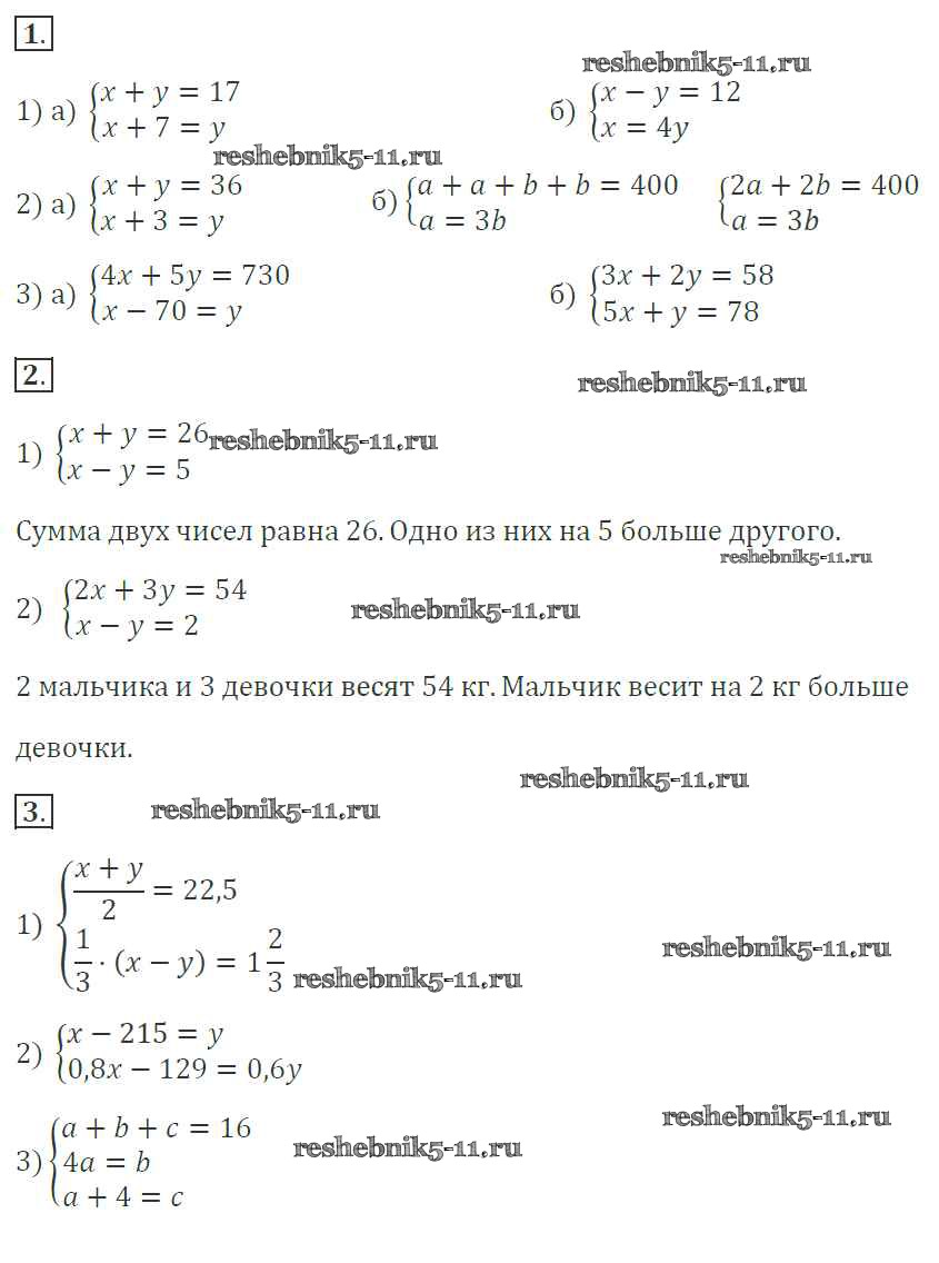 Готовая домашняя работа с ответами по Алгебре за 7 класс Звавич, Кузнецова, Суворова Дидактические материалы Просвещение 2012 ФГОС - Вариант 1 С-49. Составление системы уравнений по условию задачи