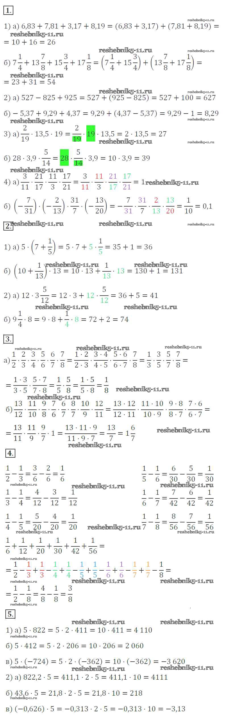 Готовая домашняя работа с ответами по Алгебре за 7 класс Звавич, Кузнецова, Суворова Дидактические материалы Просвещение 2012 ФГОС - Вариант 1 С-6. Применение свойств действий над числами к вычислениям