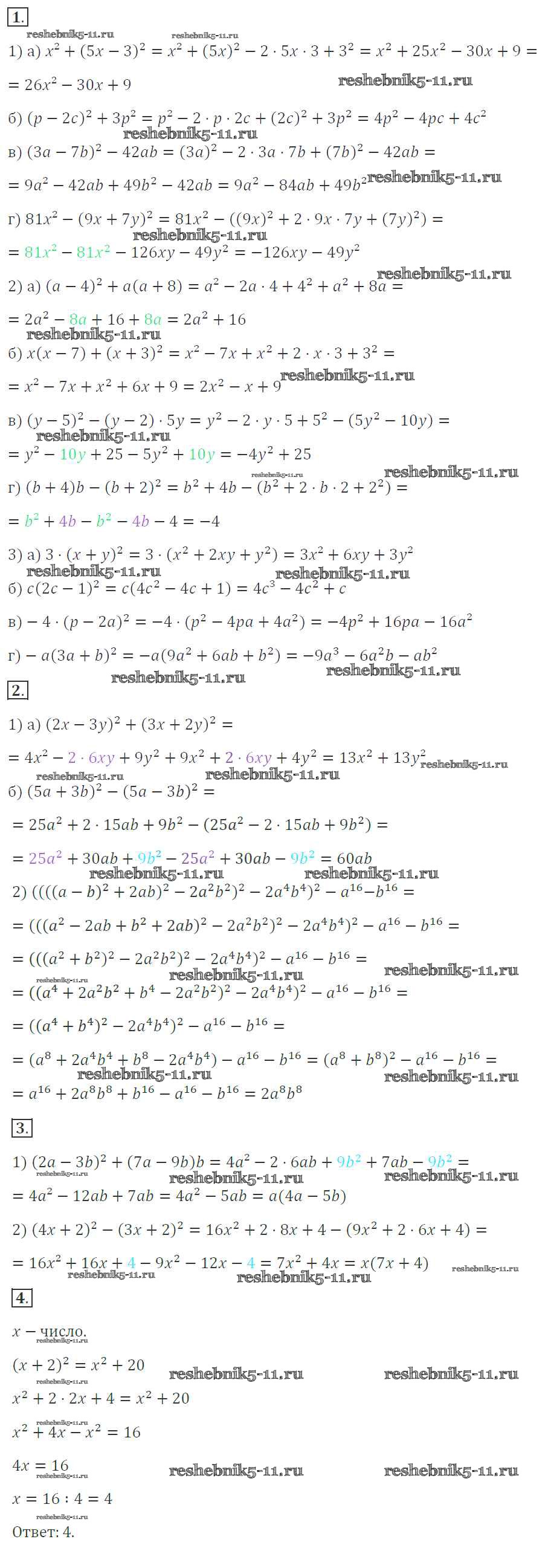 Готовая домашняя работа с ответами по Алгебре за 7 класс Звавич, Кузнецова, Суворова Дидактические материалы Просвещение 2012 ФГОС - Вариант 2 С-38. Преобразование выражений с применением формул квадрата суммы и квадрата разности