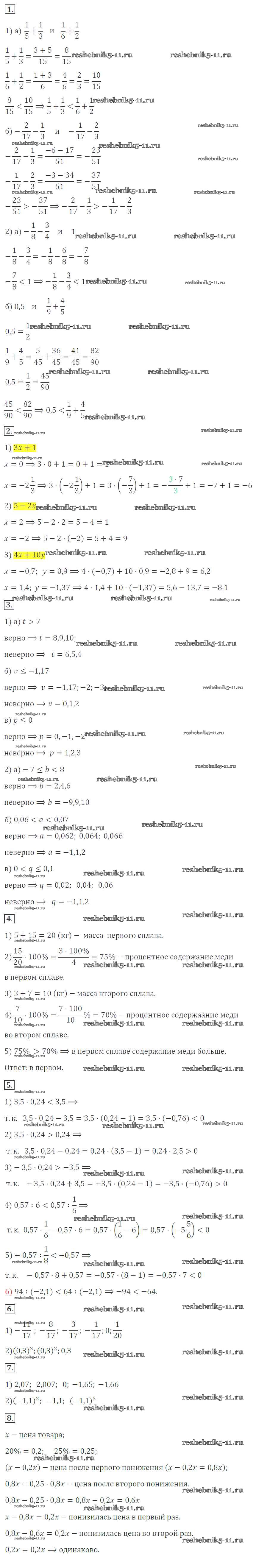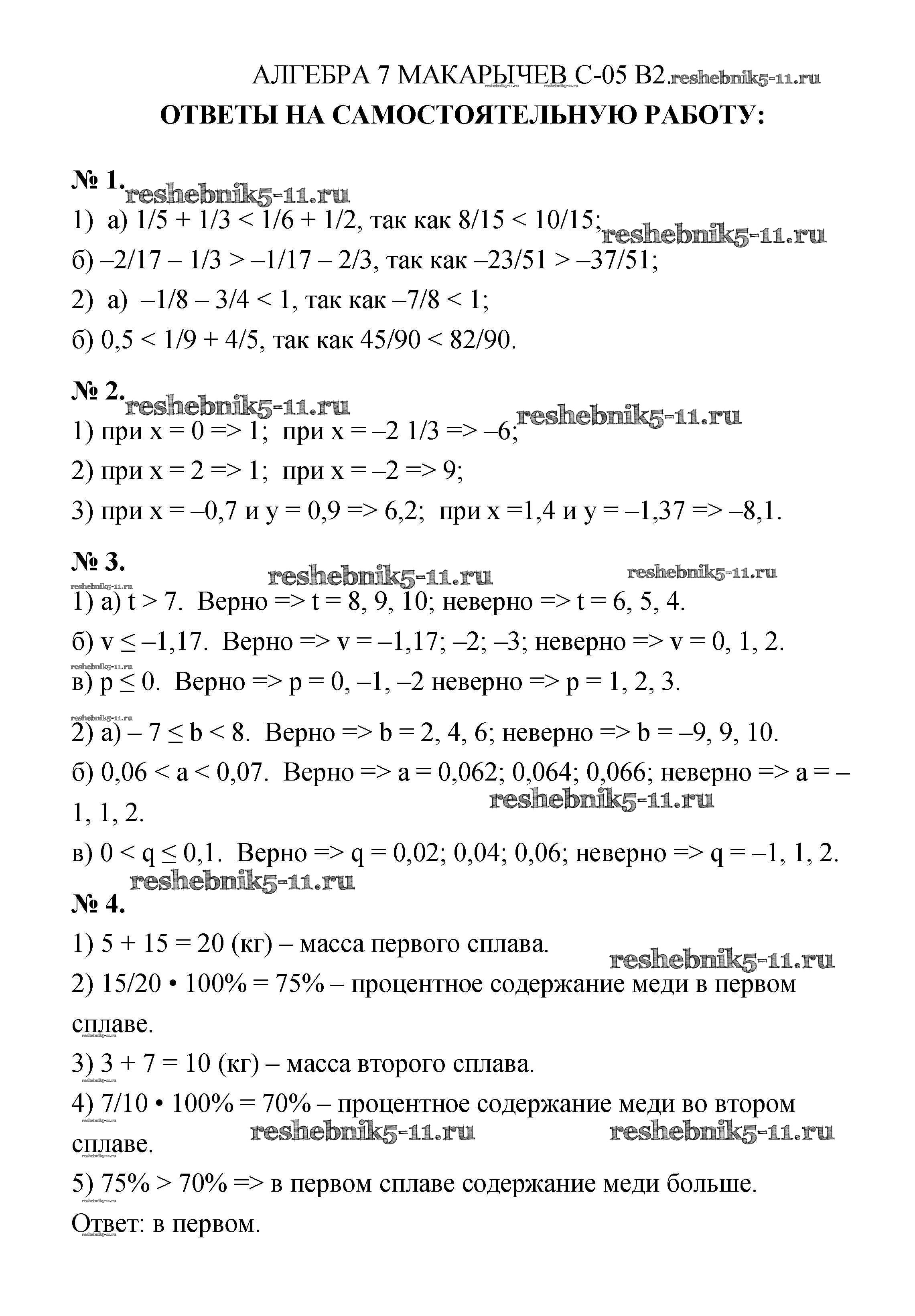Готовая домашняя работа с ответами по Алгебре за 7 класс Звавич, Кузнецова, Суворова Дидактические материалы Просвещение 2012 ФГОС - Вариант 2 С-5. Сравнение значений выражений