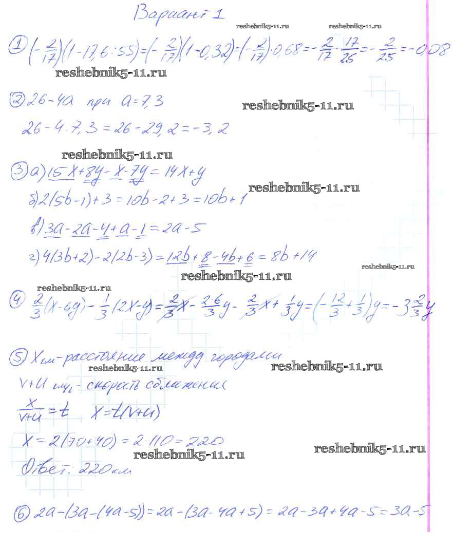 Готовая домашняя работа с ответами по Алгебре за 7 класс Звавич, Кузнецова, Суворова Дидактические материалы Просвещение 2012 ФГОС - Вариант 1 k-1a