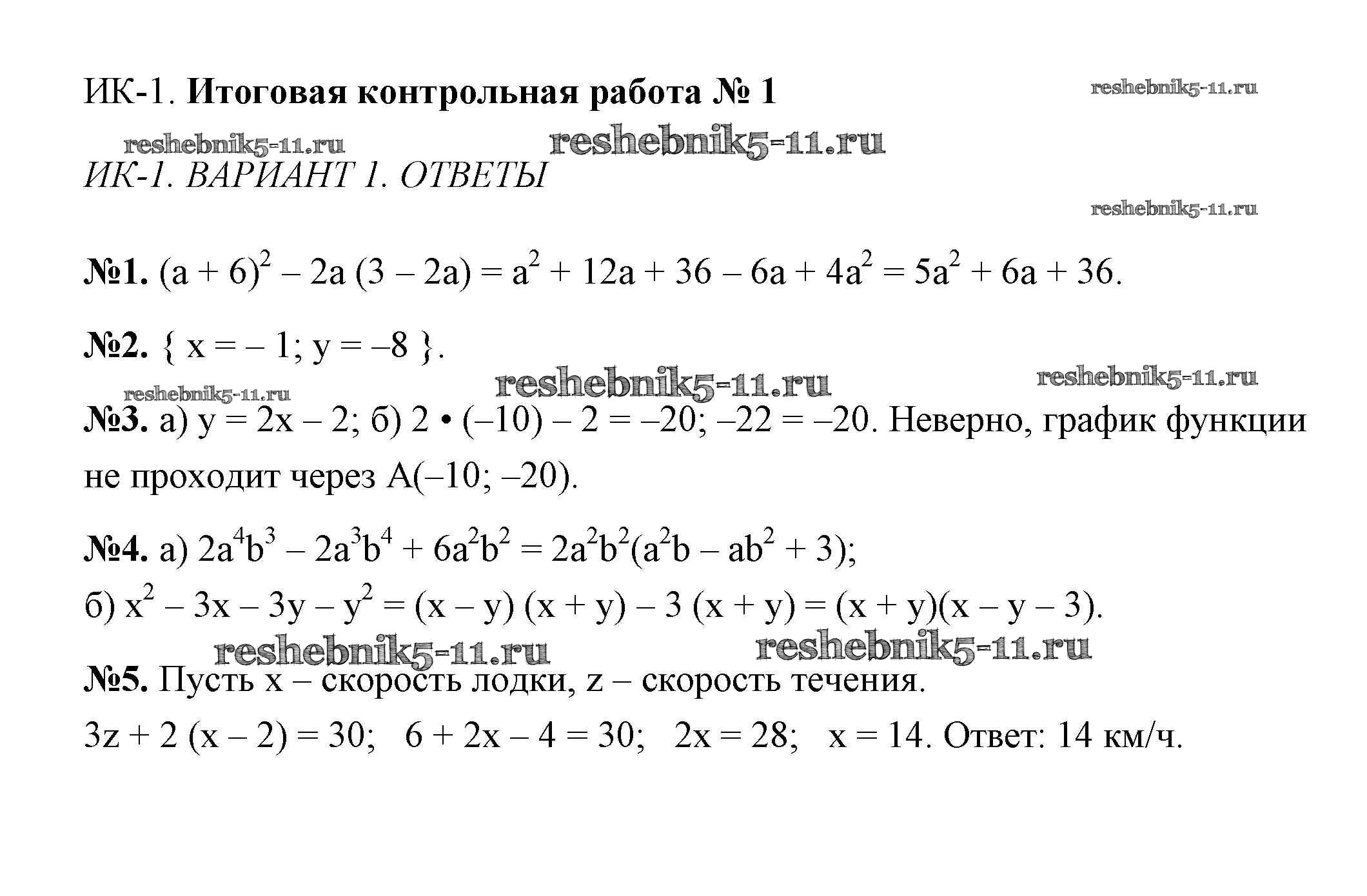 Готовая домашняя работа с ответами по Алгебре за 7 класс Звавич, Кузнецова, Суворова Дидактические материалы Просвещение 2012 ФГОС - Вариант 1 ik-1
